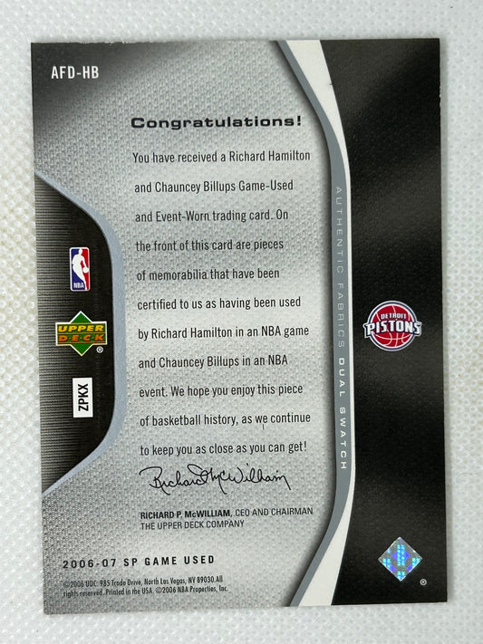 2006-07 Upper Deck SP Game Used Edition /100 Richard Hamilton Chauncey Billups #AFD-HB Detroit Pistons