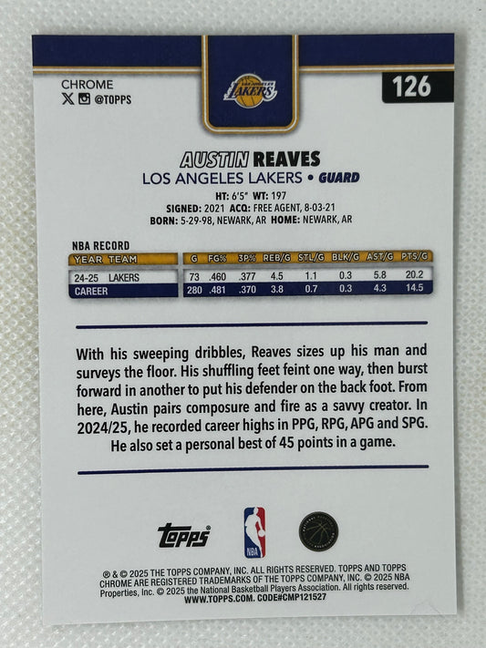 2025-26 Topps Chrome Austin Reaves Refractor #126 Los Angeles Lakers