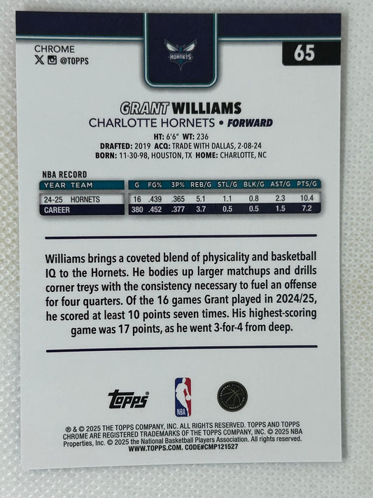2025-26 Topps Chrome Grant Williams Red White Blue Refractor #65 Charlotte Hornets