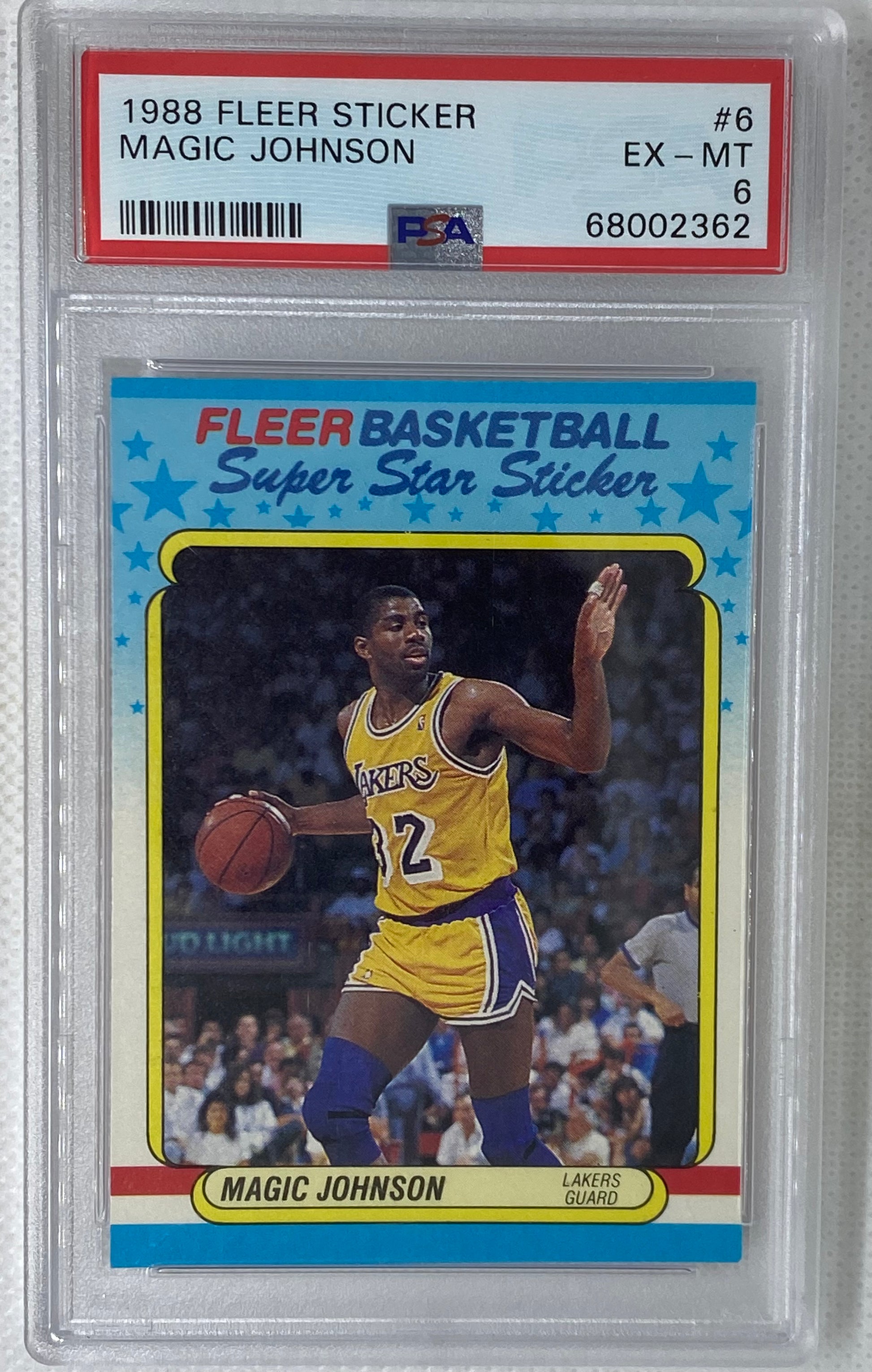 1988 Fleer Sticker Magic Johnson #6 PSA 6 Los Angeles Lakers