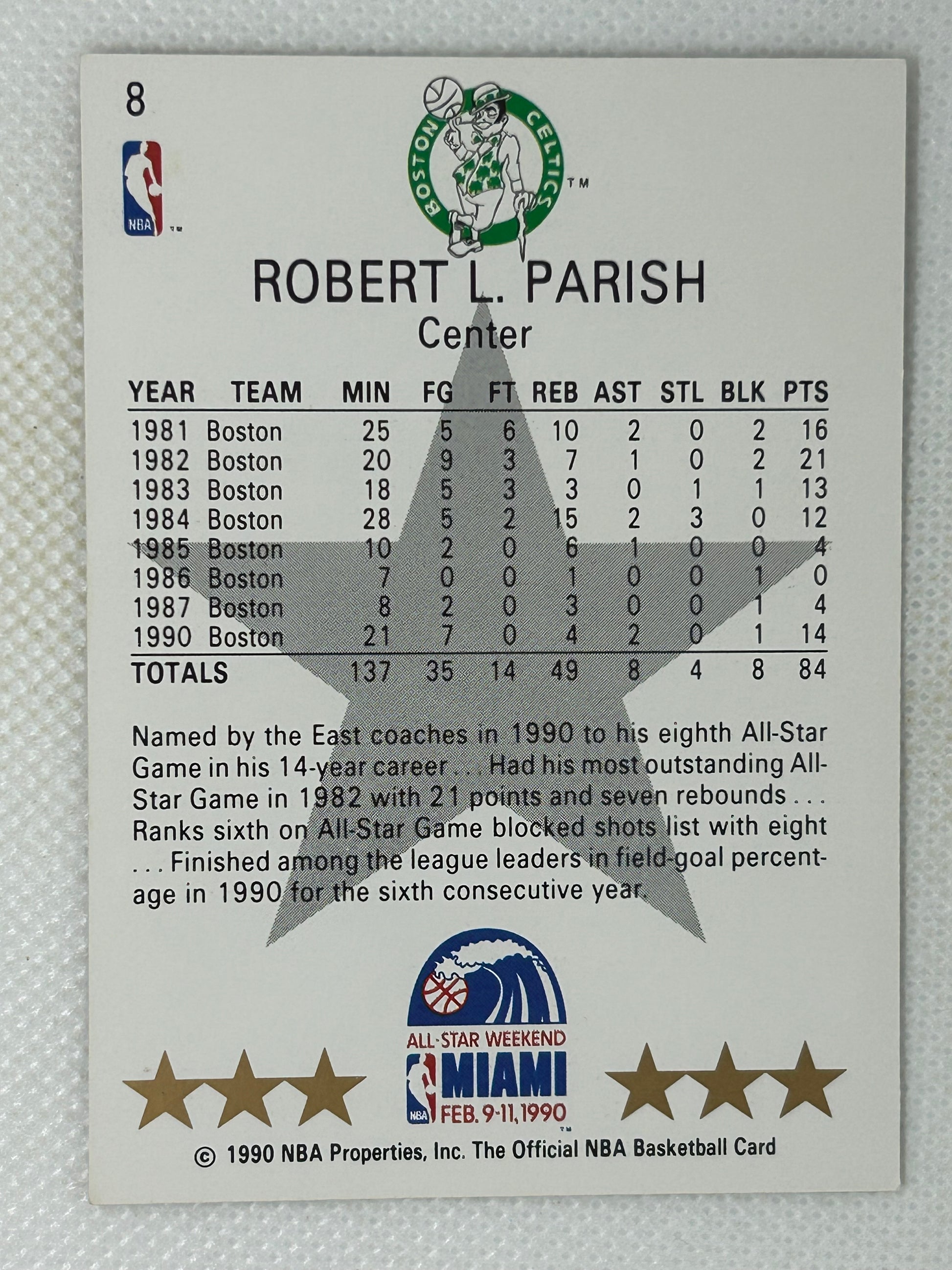 Celebrate the storied career of Robert Parish with the 1990-91 NBA Hoops All Star East #8 Boston Celtics Signed Card. Known for his durability and skill, Parish played an essential role in the Celtics' success, including three NBA championships. This autographed card honors his impact on the game and is a cherished item for fans and collectors alike.