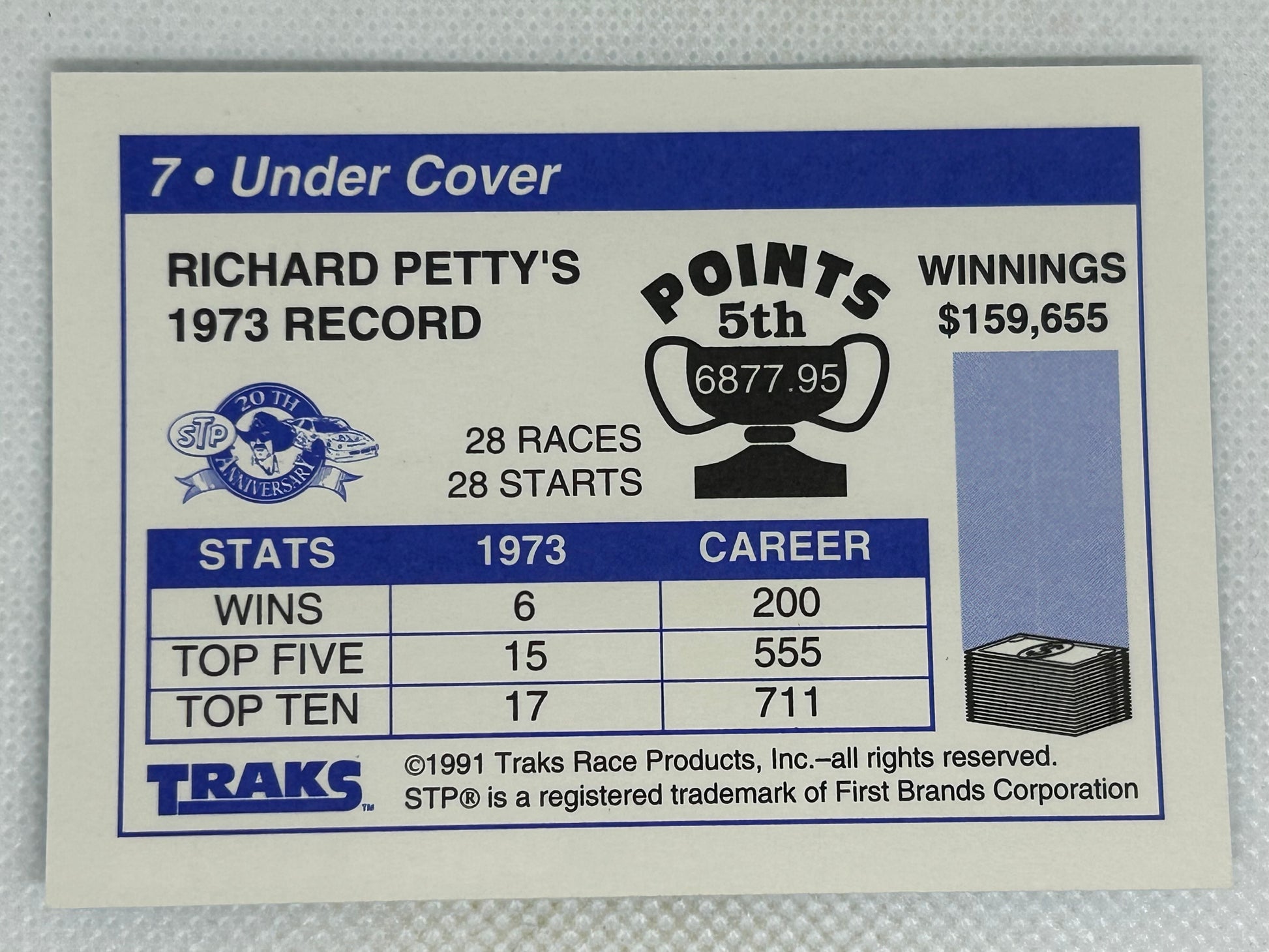 Richard Petty's unmatched legacy in motorsports is captured in this 1991 Traks #7 signed card, a tribute to racing's most iconic figure. With 200 career victories and seven NASCAR Cup Series championships, Petty redefined what was possible in stock car racing and became a cultural phenomenon. His distinctive style, unwavering determination, and genuine connection with fans transformed him into The King—a title earned through decades of excellence and innovation on the track. Petty's influence extended far beyond racing, as he became an ambassador for the sport and a symbol of American motorsports heritage. His competitive spirit and record-breaking achievements established standards that continue to inspire generations of drivers. This authenticated autographed card honors Petty's extraordinary career and his indelible mark on NASCAR history, making it an essential collectible for those who appreciate racing greatness.