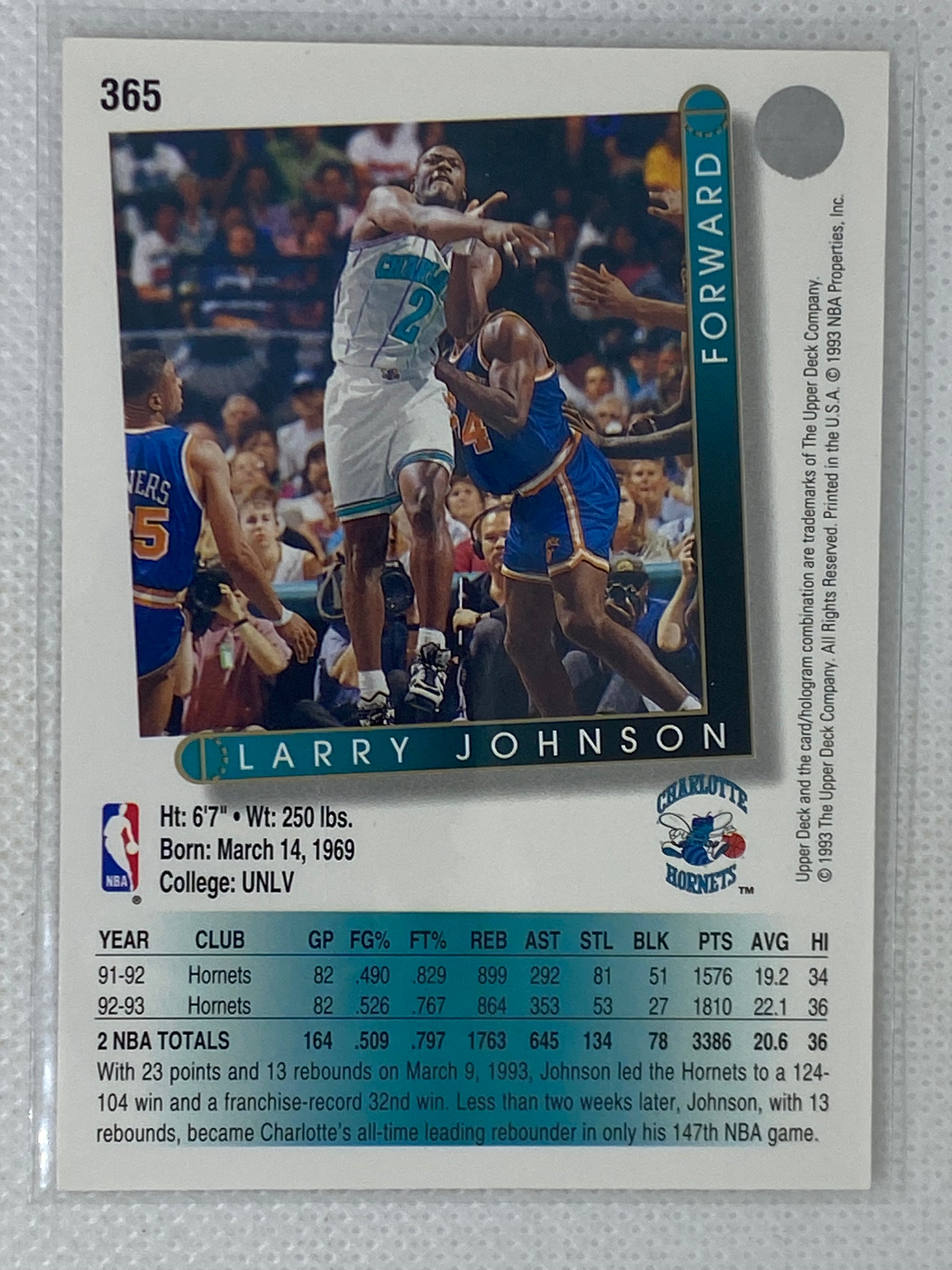 1993-94 Upper Deck Larry Johnson #365 Charlotte Hornets