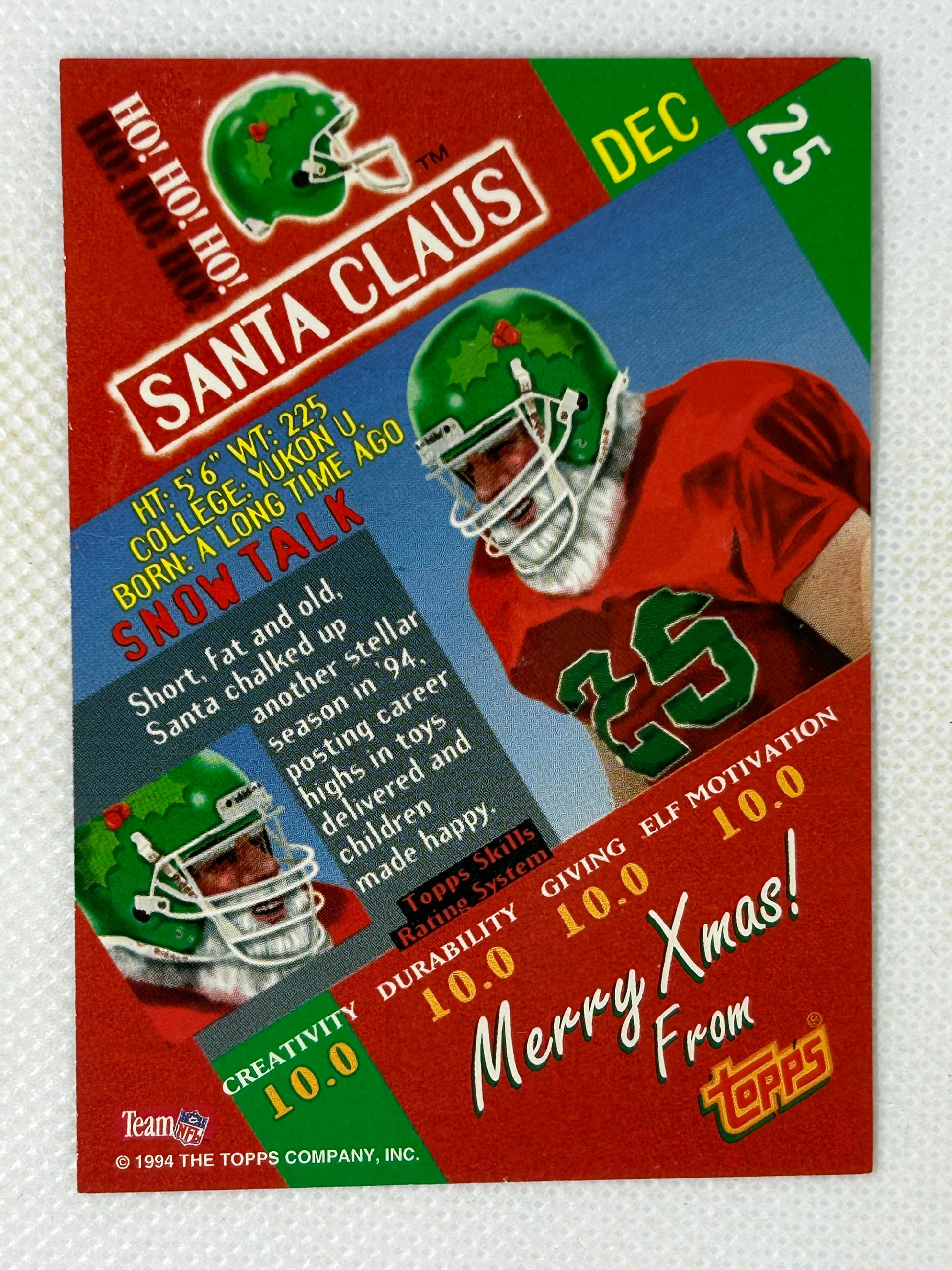 1994 Topps NFL #25 Santa Claus Card Seasons Greetings