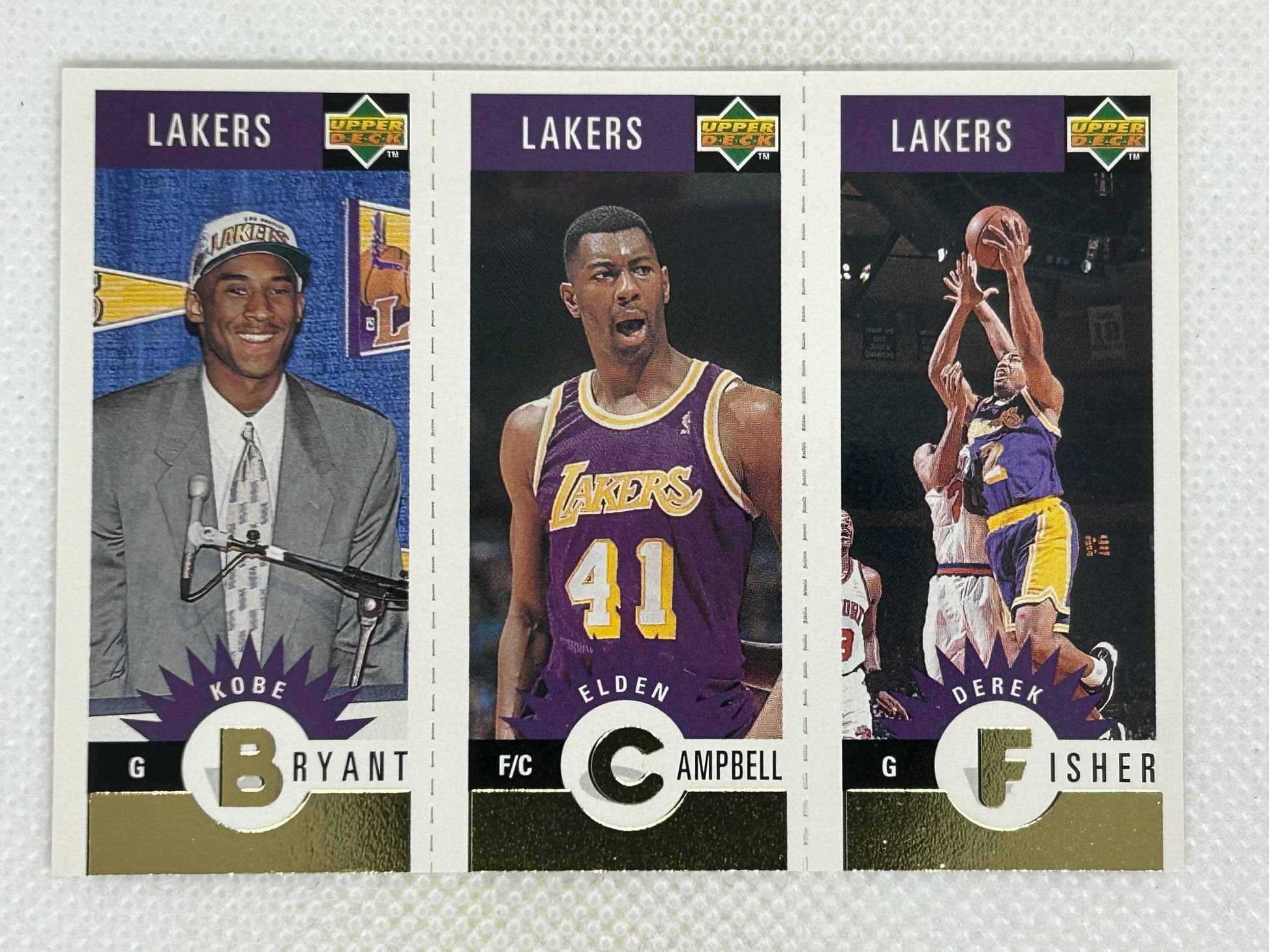 1996-97 Upper Deck Collector's Choice Gold #L1 Kobe Bryant Elden Campbell Derek Fisher Rookie Card Los Angeles Lakers