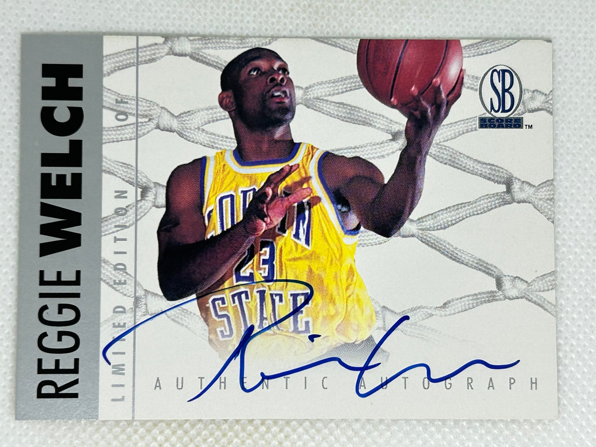 The 1997 Score Board Basketball Authentic Autograph card features Reggie Welch from his time with the Coppin State Eagles. Welch made his mark in college basketball with strong performances and dedication on the court. This autograph card honors his contributions to the sport and highlights a key period in his basketball career.