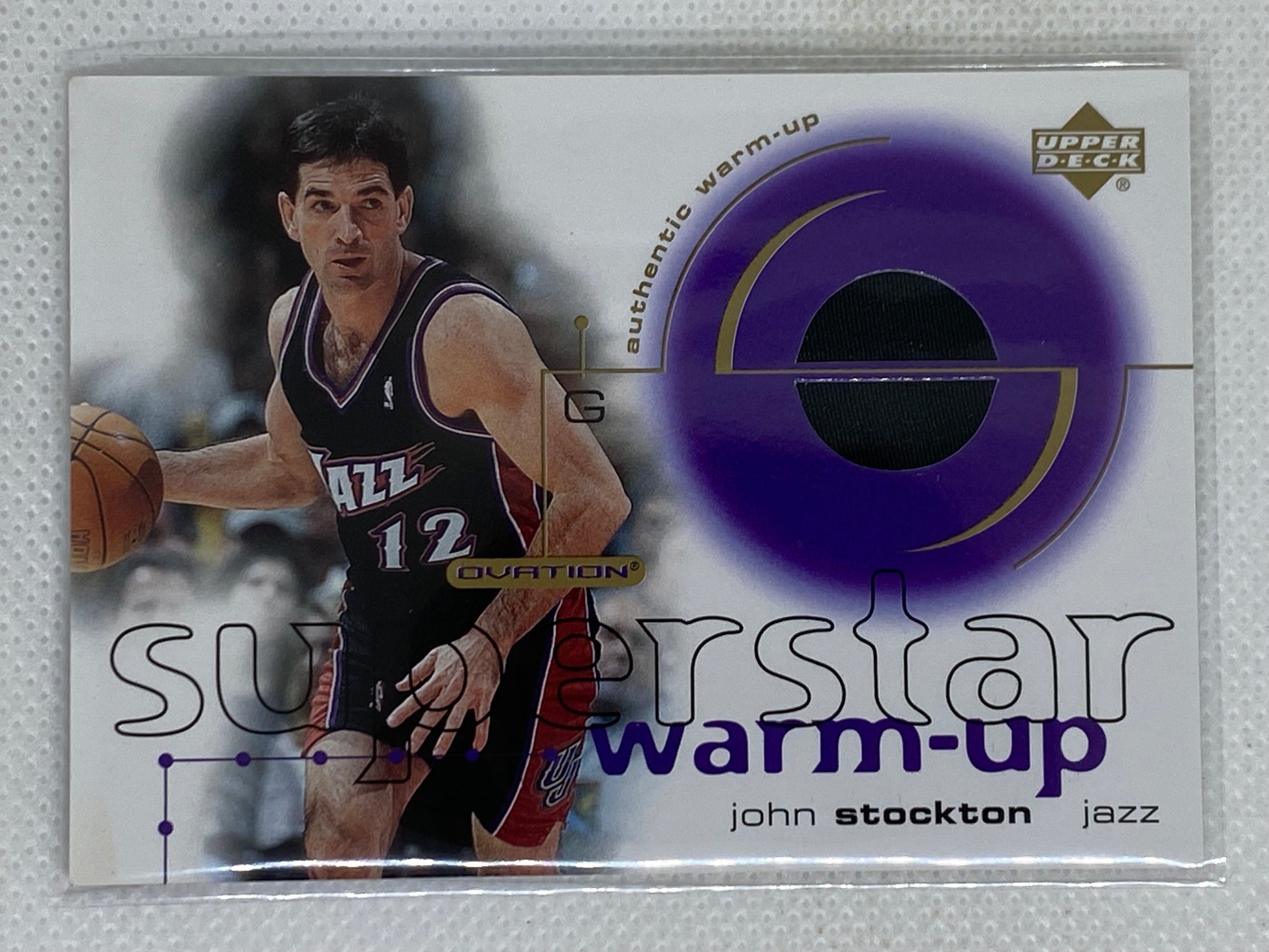 Celebrate the legendary career of John Stockton with the 2001-02 Upper Deck Ovation John Stockton #ST Superstar Warm Up HOF Utah Jazz card. This rare Superstar Warm-Up card pays tribute to Stockton's Hall of Fame journey with the Utah Jazz. A coveted find for basketball enthusiasts and collectors, it beautifully captures Stockton's impact on the court. Don't miss the opportunity to own this iconic piece of basketball history – secure it today and honor the Hall of Fame legacy of John Stockton!