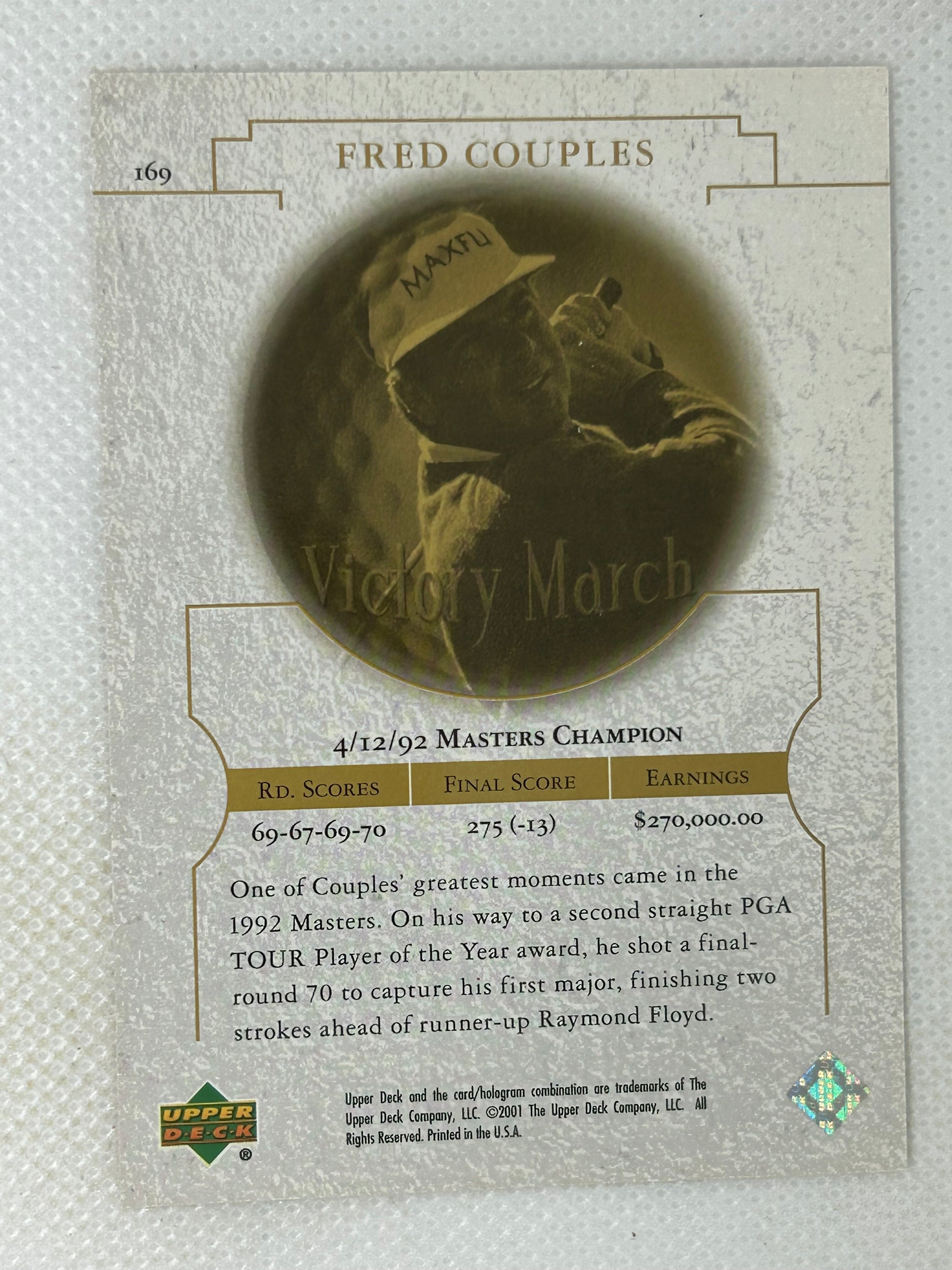 Celebrate the Masters win by adding this 2001 Upper Deck Golf Victory March #169 Fred Couples Signed Card to your collection. This card features the autograph of the 1992 Masters Champion, Fred Couples! Don't miss out on the opportunity to own a piece of golf history.