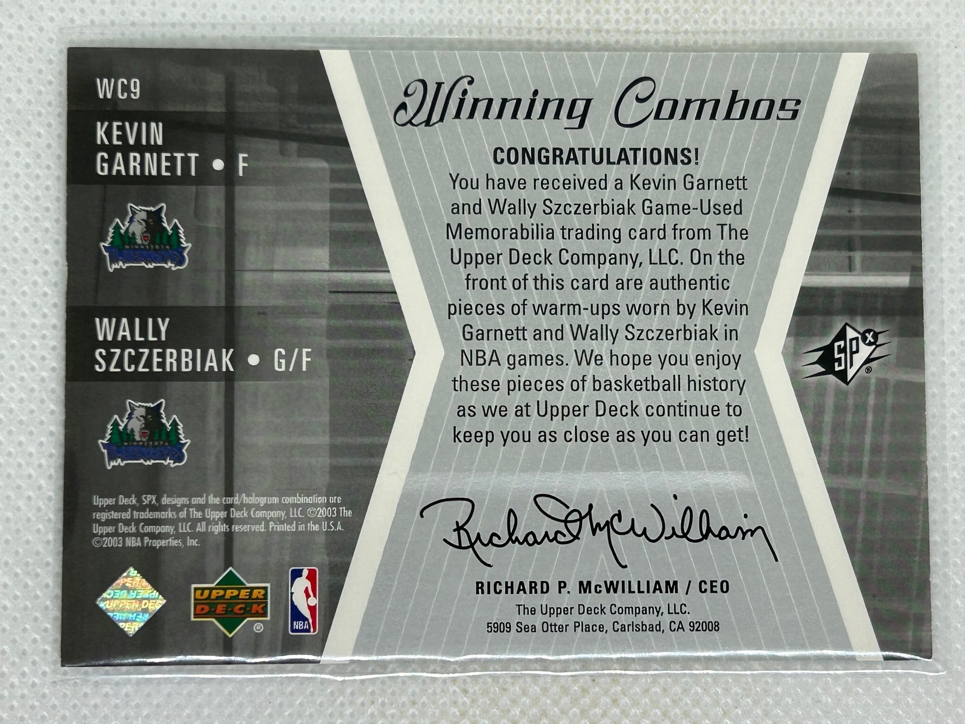 2003-04 Upperdeck SPX Winning Combos Kevin Garnett Wally Szczerbiak WC9 Minnesota Timberwolves
