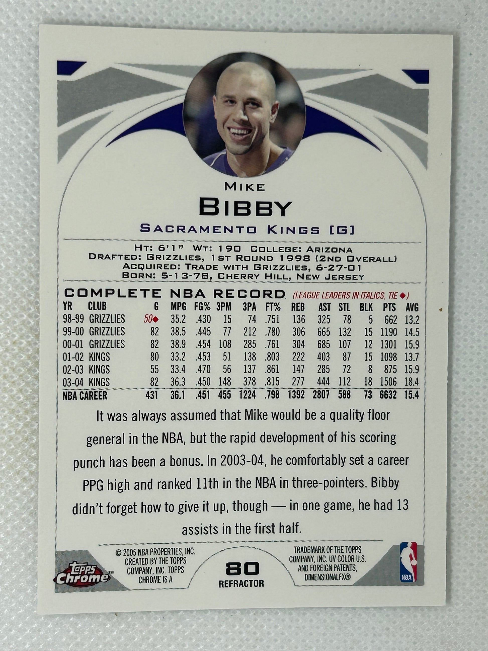 2006-07 Topps Chrome Silver Refractor #80 Mike Bibby Sacramento Kings Signed Card