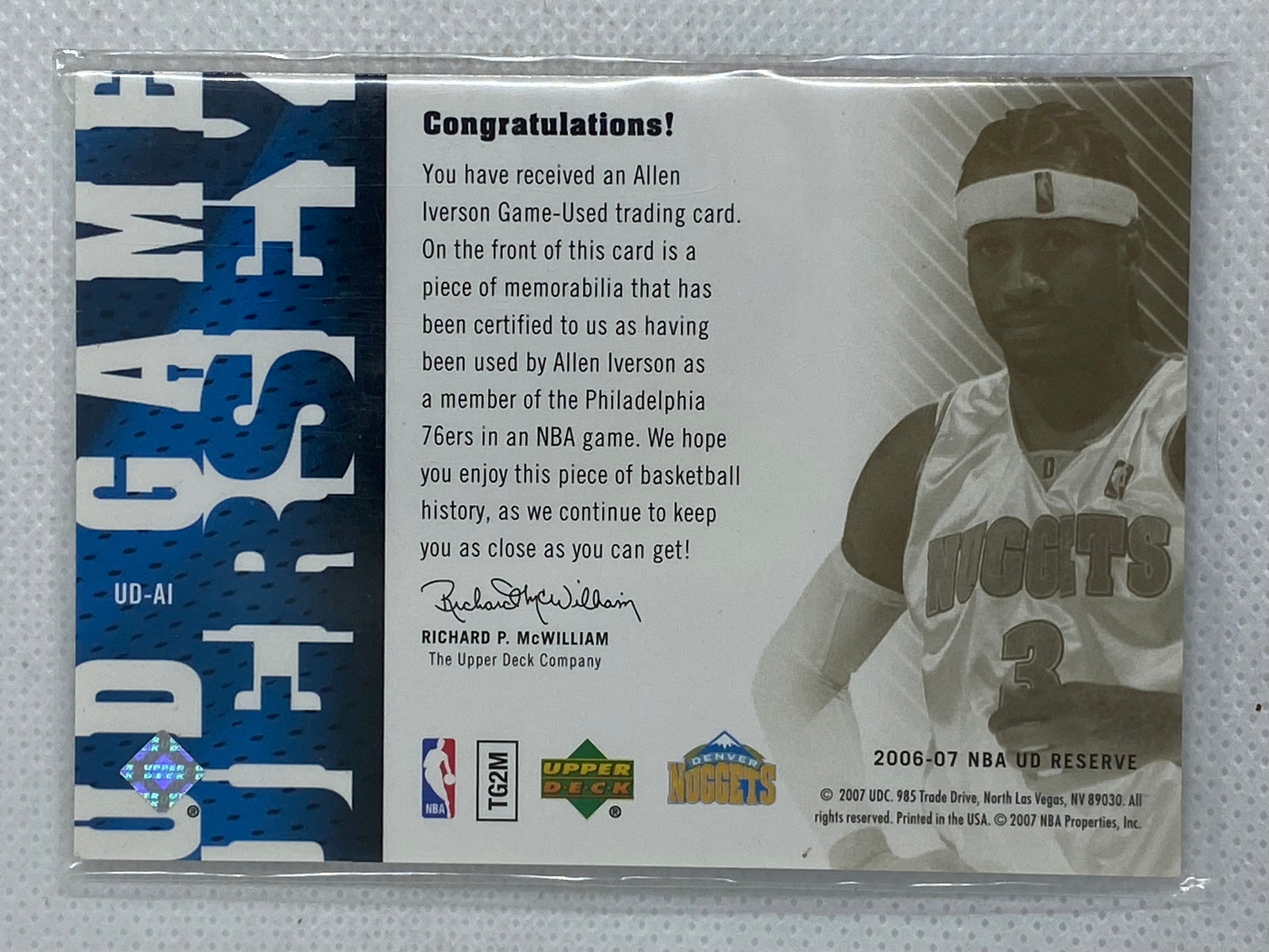 2006-07 UD Reserve UD Game Jersey Allen Iverson #UD-AI HOF