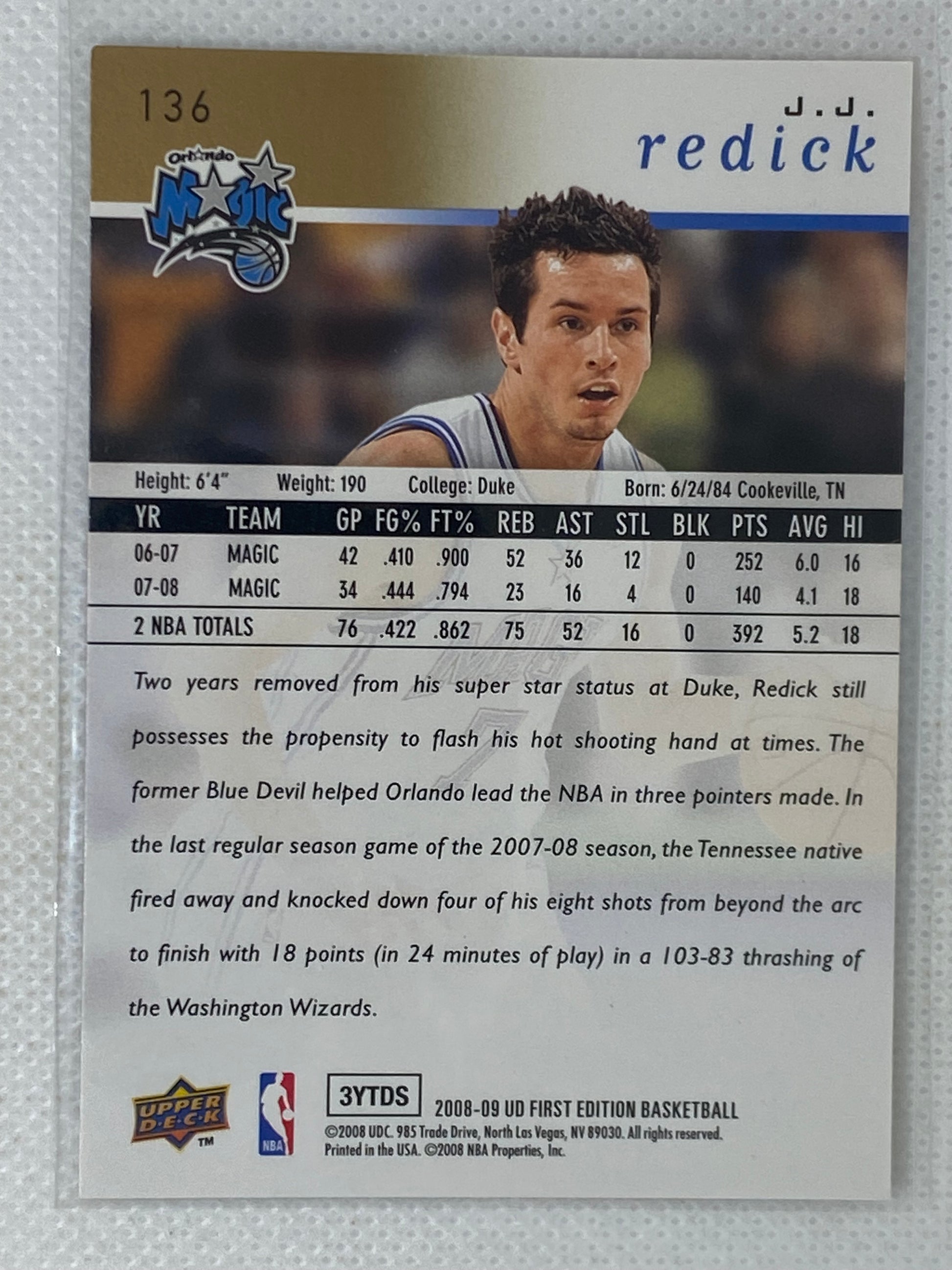2008-09 Upper Deck First Edition Gold J.J. Redick #136 Orlando Magic