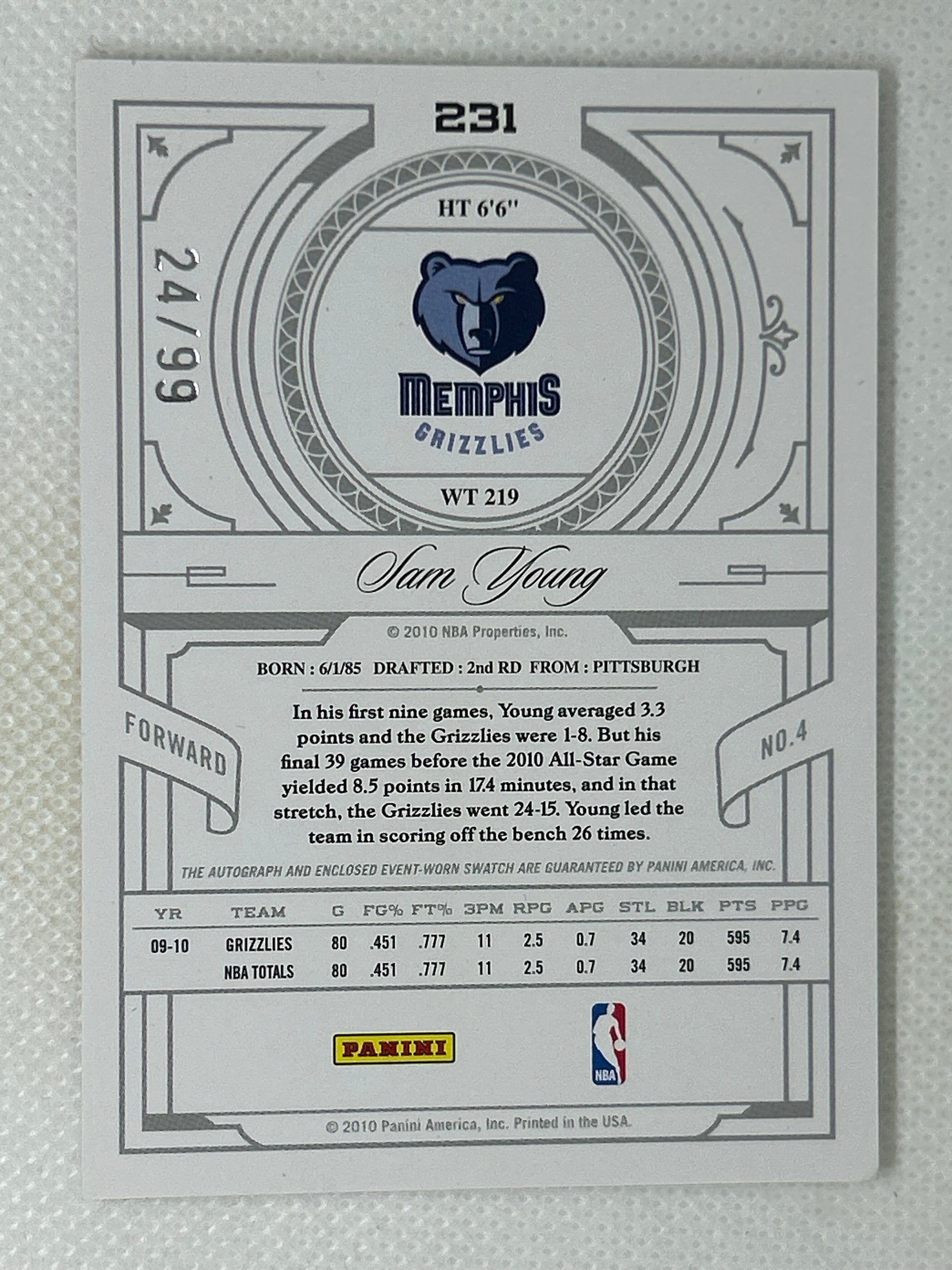2009-10 Panini Playoff National Treasures /99 Sam Young #231 Nasty Rookie Patch Autograph Memphis Grizzlies