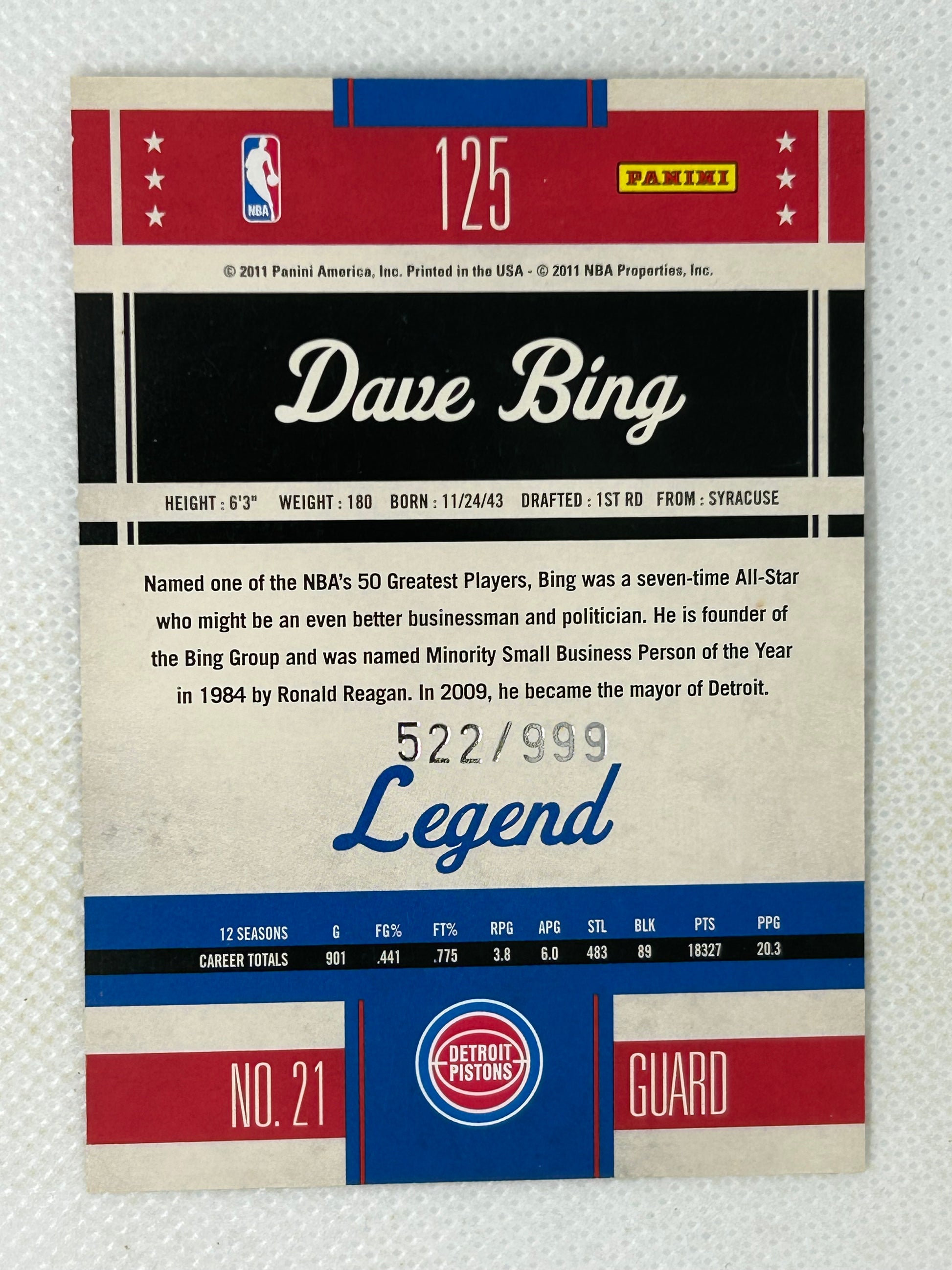2010-11 Panini Classics Legends /999 Dave Bing #125 Detroit Pistons Signed Card