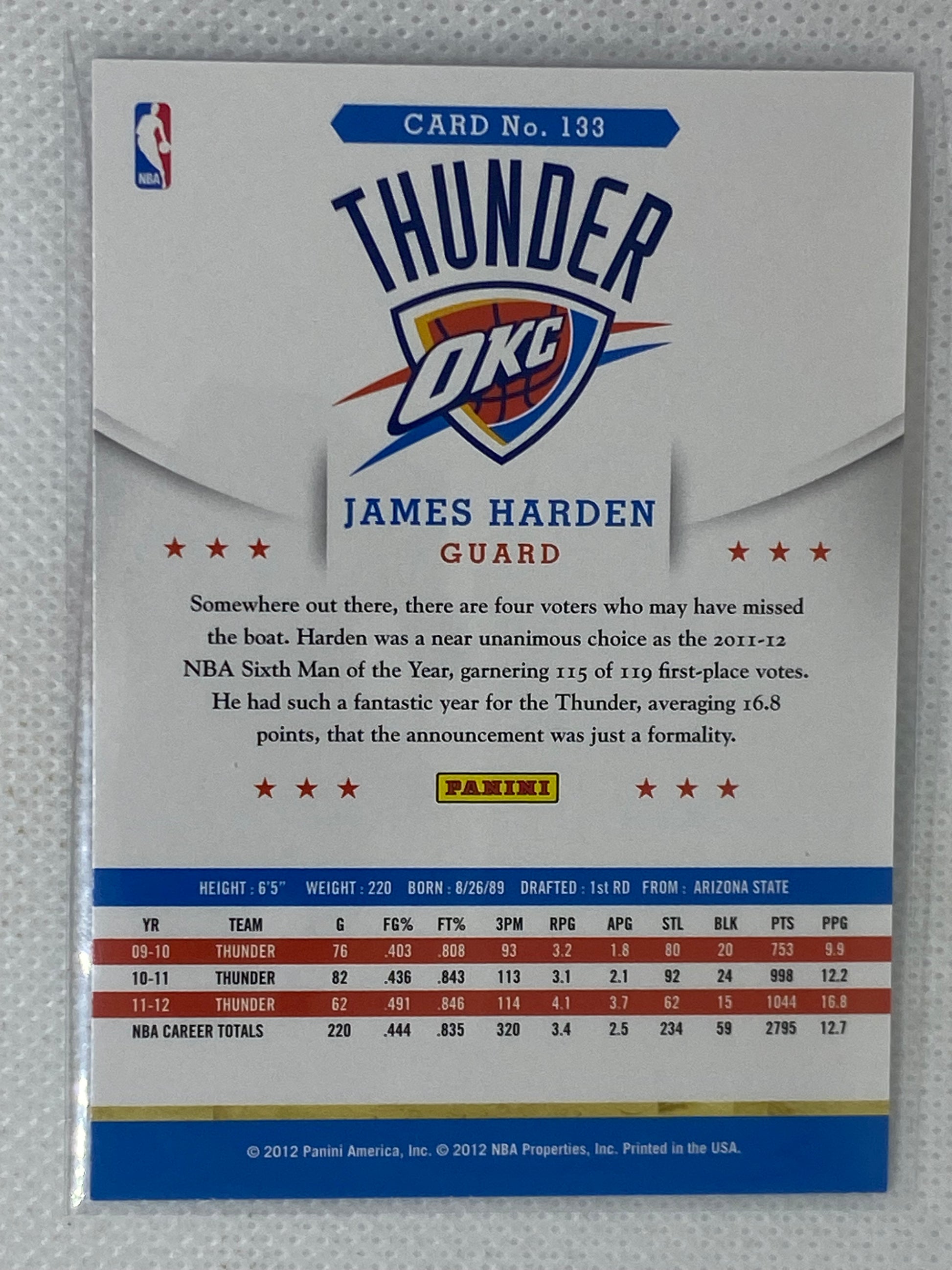2012-13 Panini Hoops James Harden #133 Oklahoma City Thunder