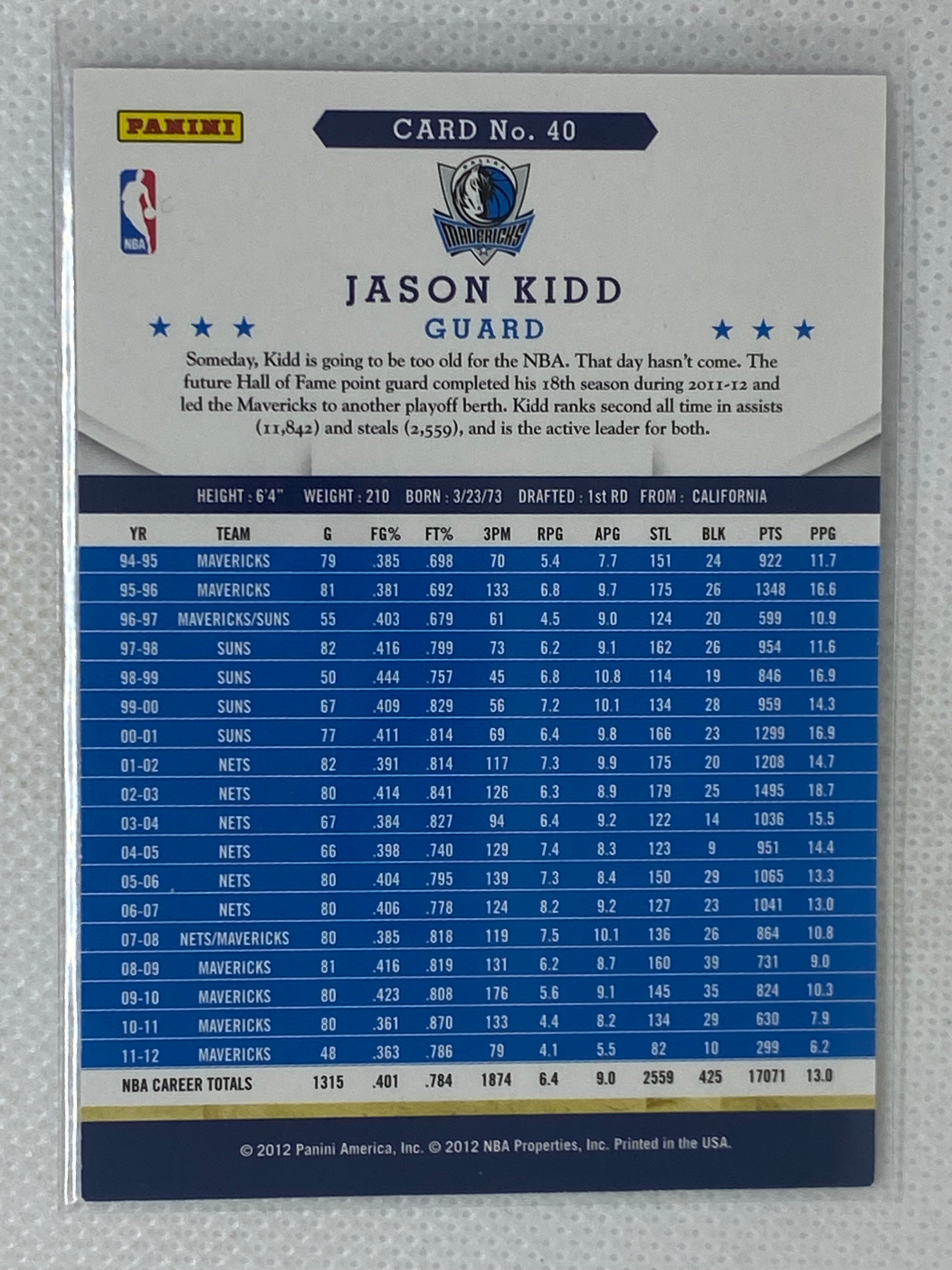2012-13 Panini NBA Hoops Jason Kidd #40 Dallas Mavericks HOF