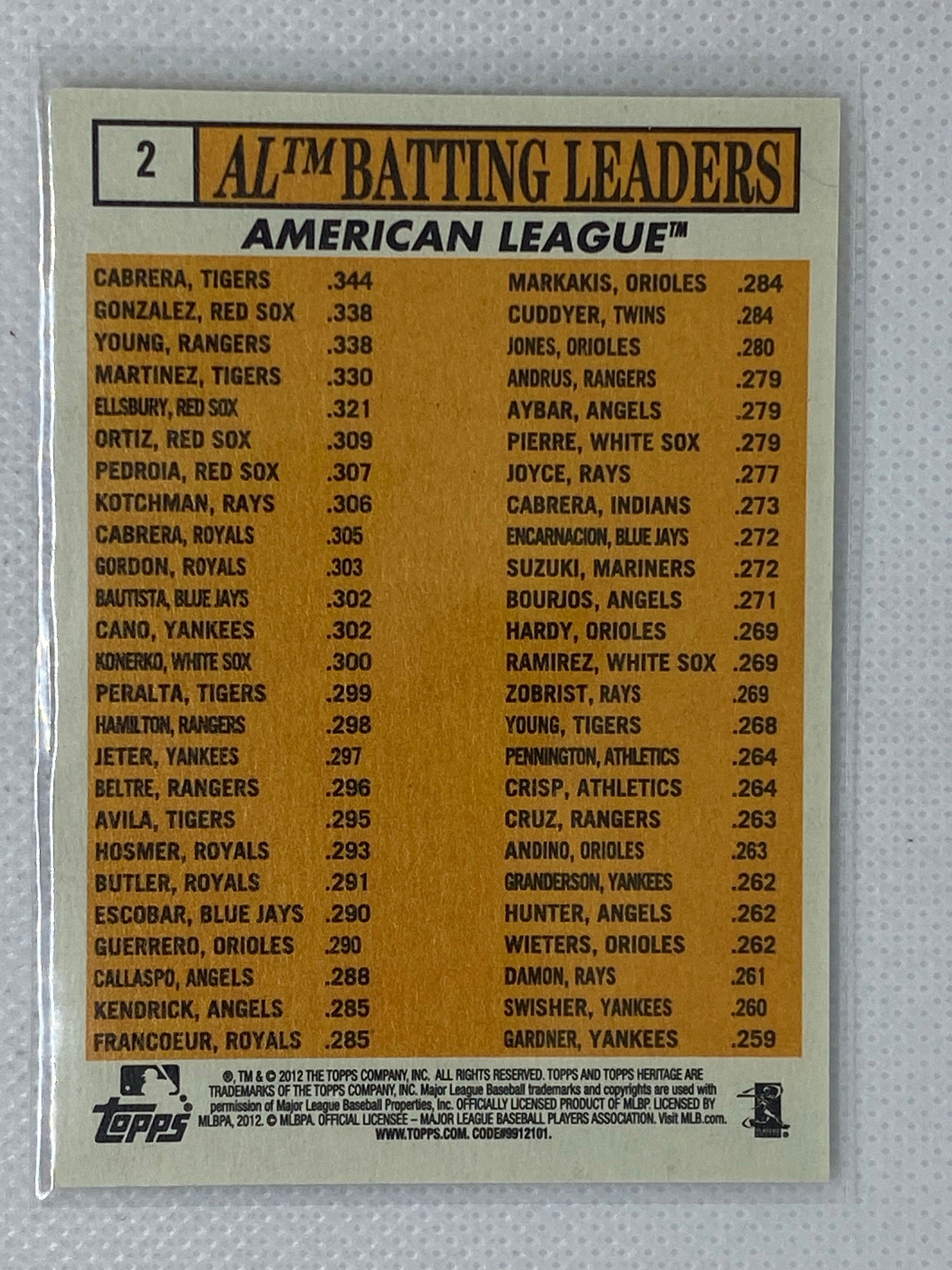 2012 Topps Heritage Miguel Cabrera / Gonzalez /Young League Leaders # 2