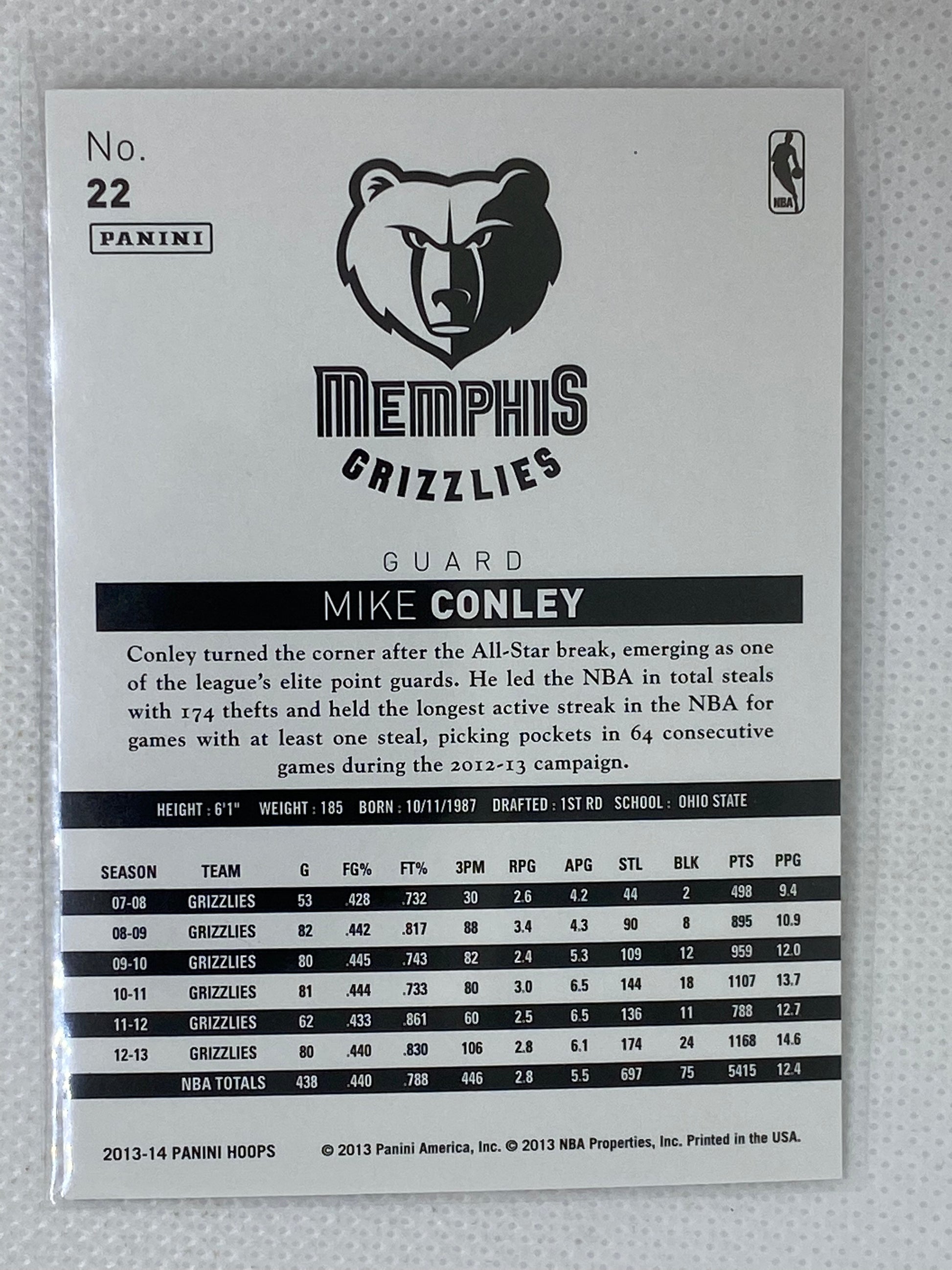 2013-14 Hoops Gold Memphis Grizzlies Basketball Card #22 Mike Conley