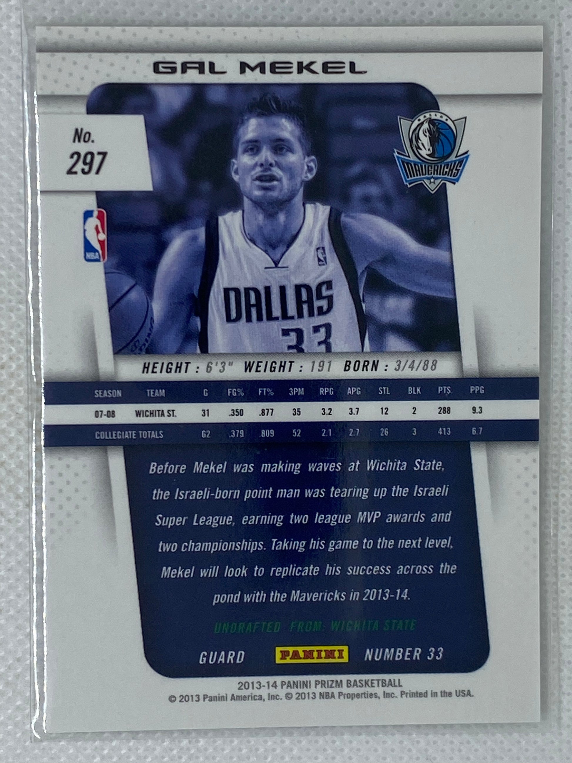 2013-14 Panini Prizm Dallas Mavericks Basketball Card #297 Gal Mekel Rookie