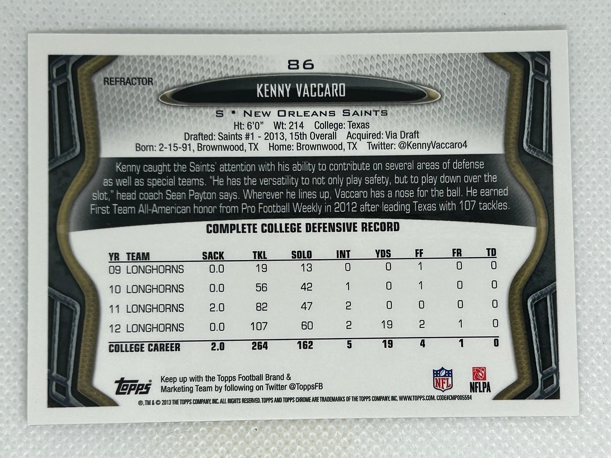 2013 Topps Chrome Refractors Kenny Vaccaro Rookie #86 New Orleans Saints