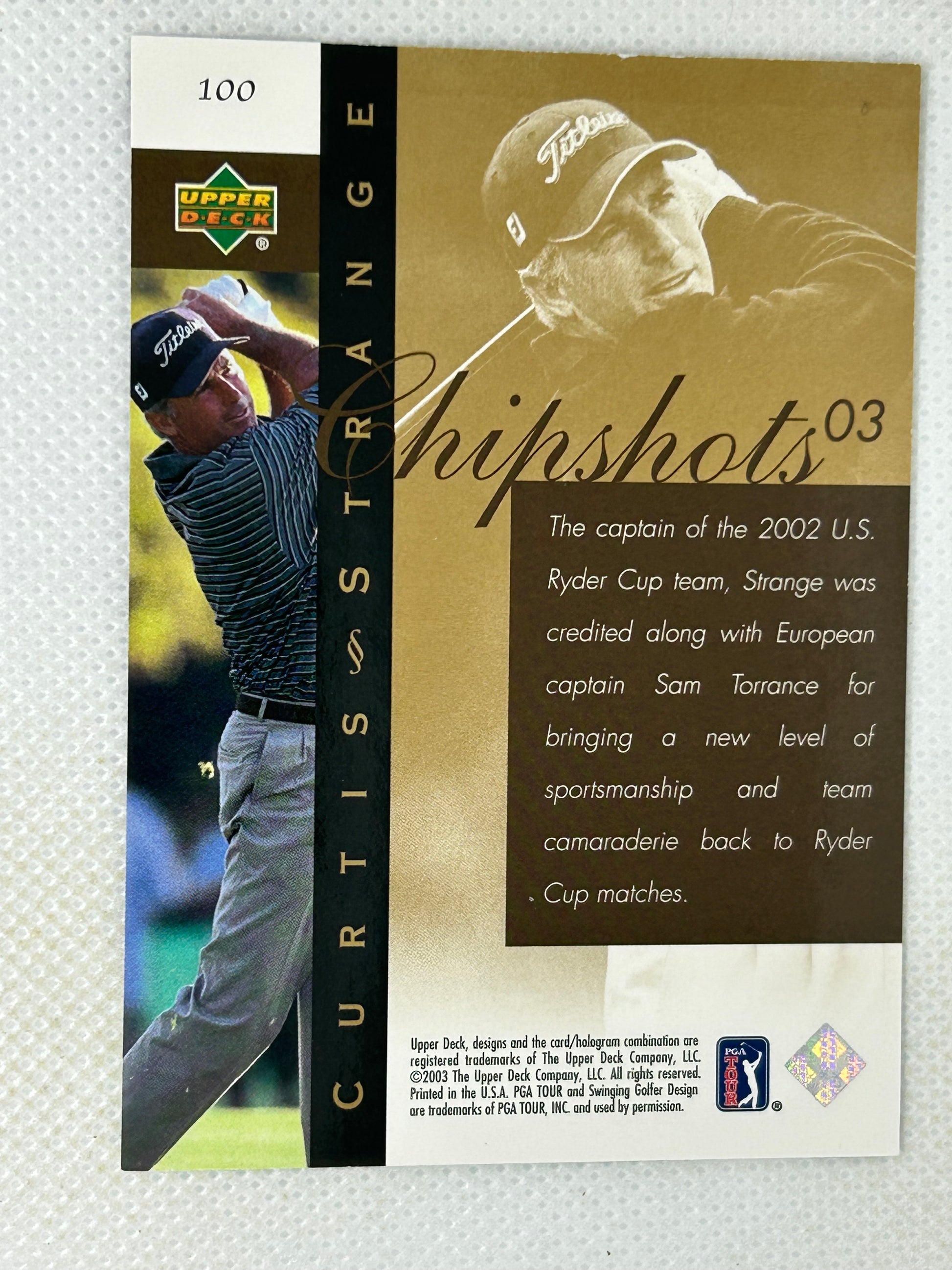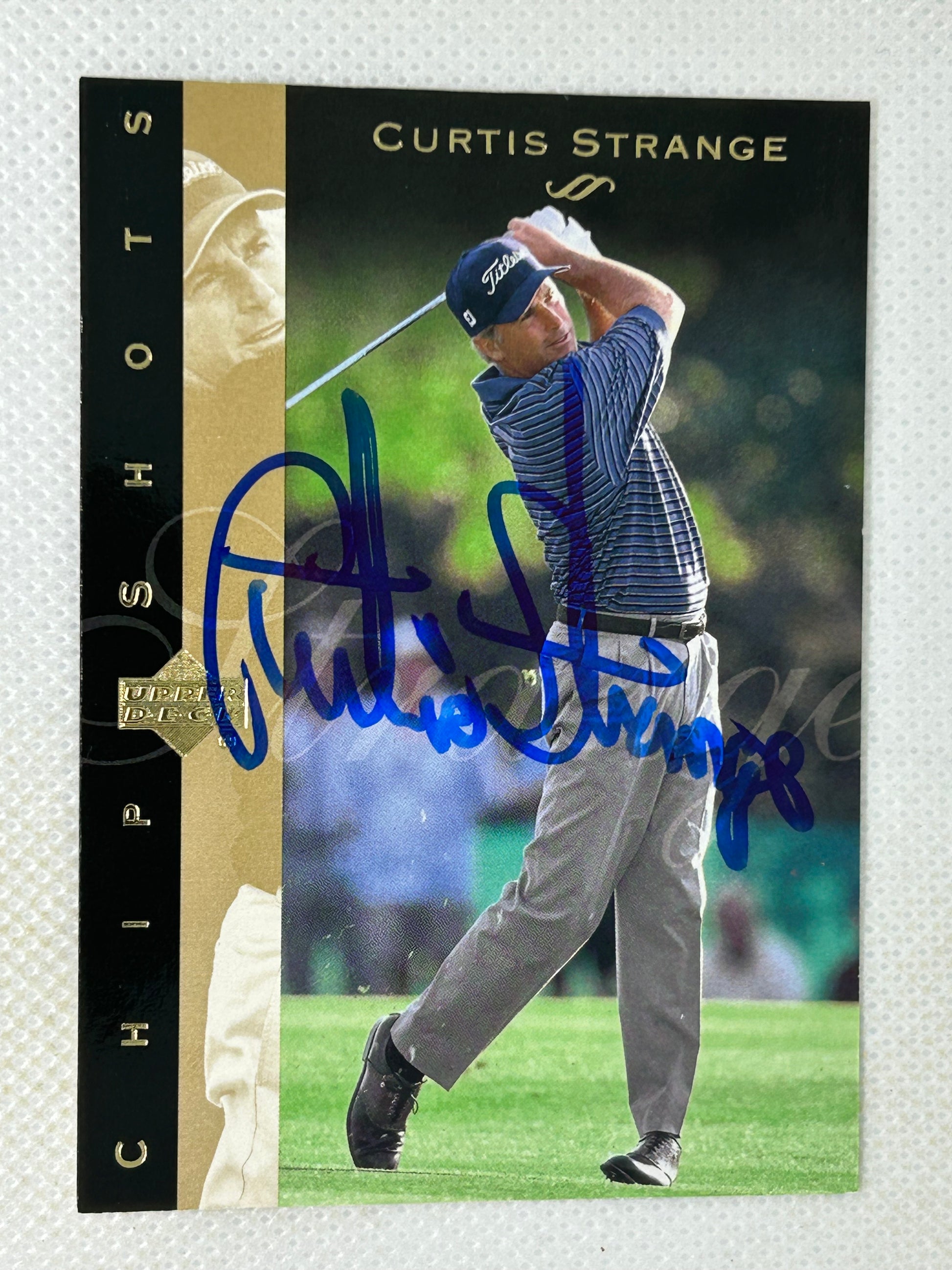 Upgrade your collection with this 2003 Upperdeck ChipShots Curtis Strange #100 Signed Card. This rare card features an authentic signature from the legendary golfer, adding value and uniqueness to your collection. Don't miss out on this amazing opportunity to enhance your collection.
