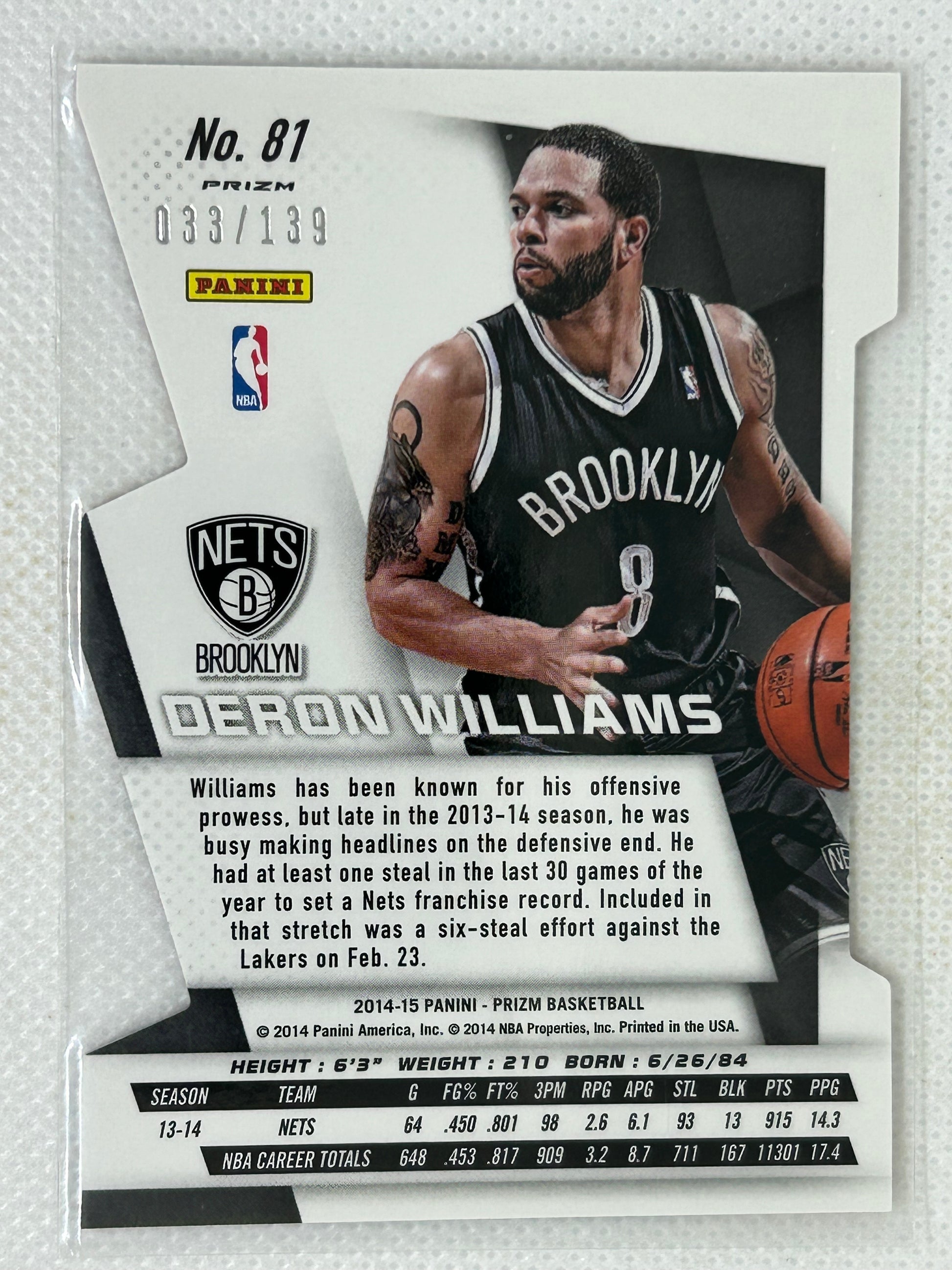 2014-15 Panini Prizm Orange Die-Cut Prizm /139 Deron Williams #81 Brooklyn Nets