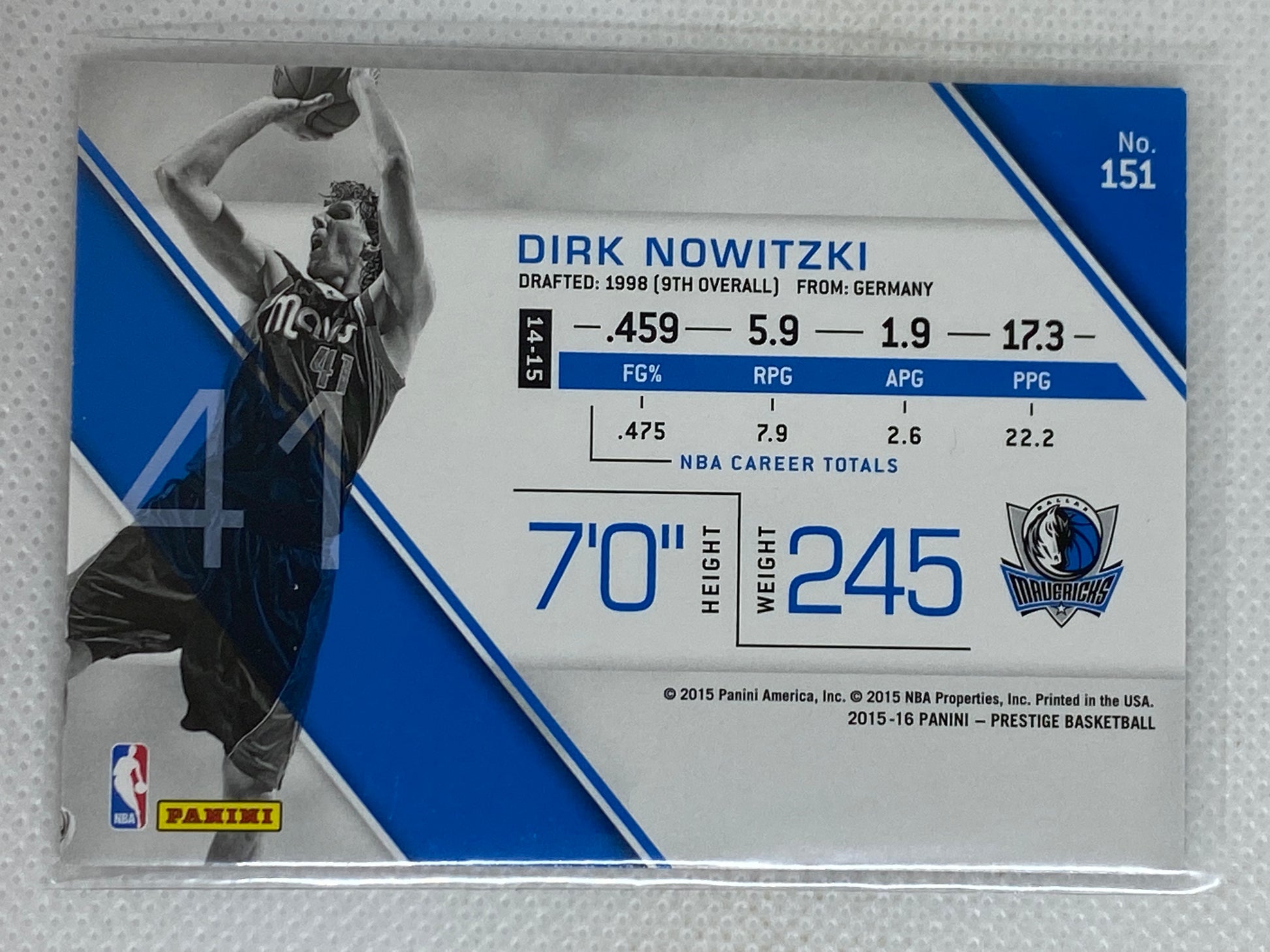 2015-16 Prestige Basketball #151 Dirk Nowitzki Dallas Mavericks