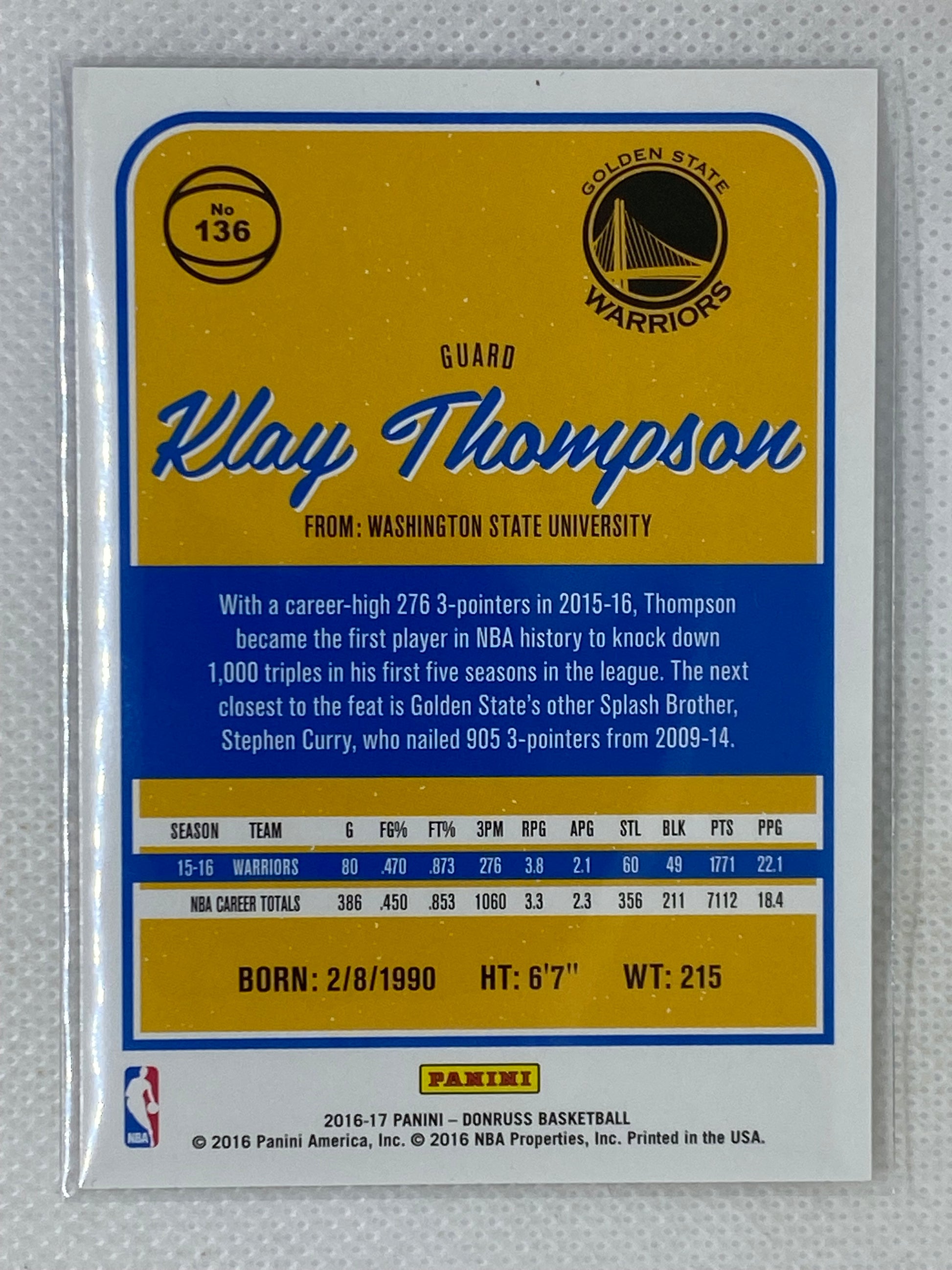 2016-17 Panini Donruss Holo Laser Green & Yellow #136 Klay Thompson Golden State Warriors