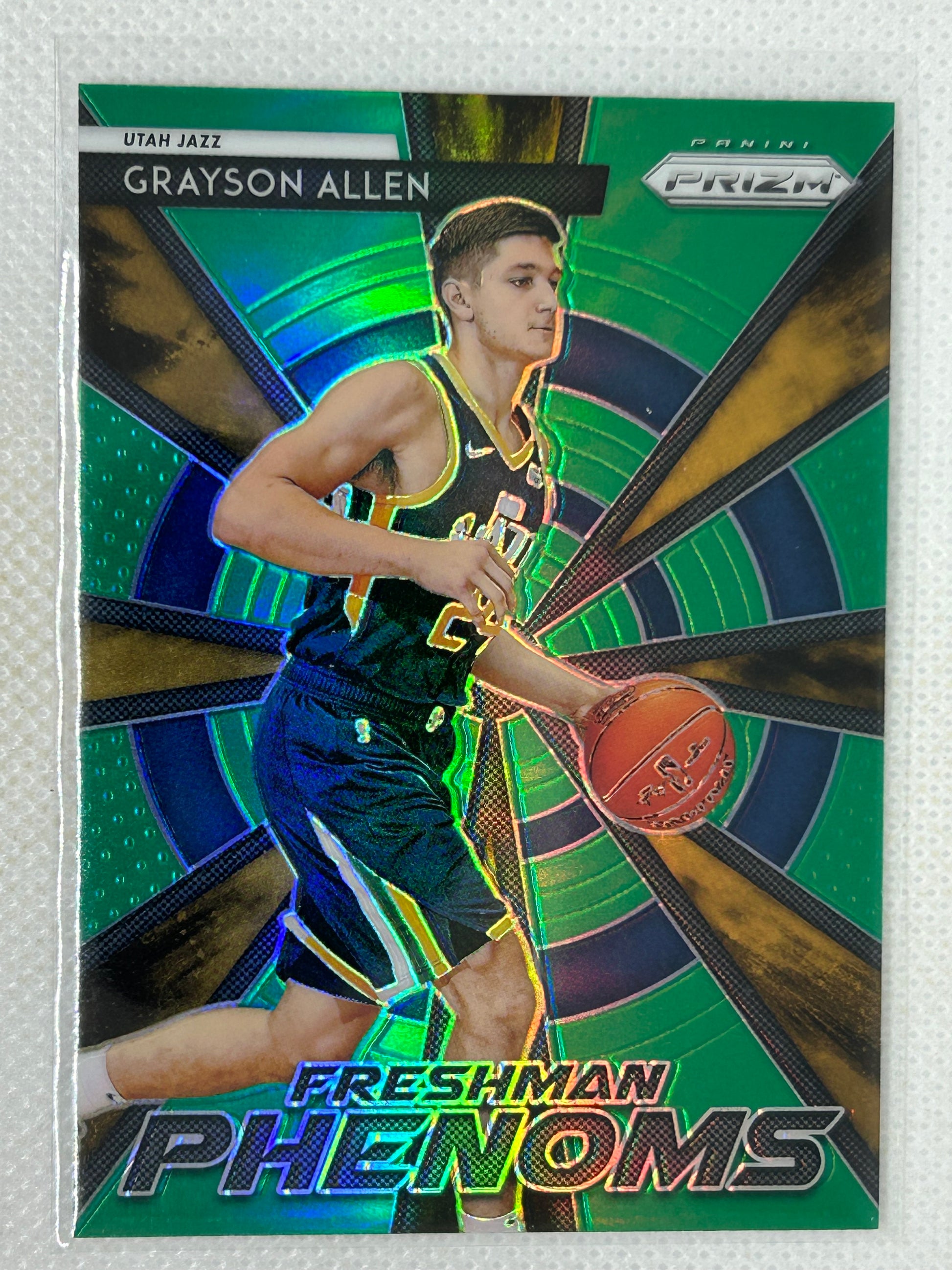 2018-19 Panini Prizm Freshman Phenoms Green Grayson Allen Rookie #5 for the Utah Jazz. Perfect for any fan or collector! Celebrate Grayson Allen's rookie year with this vibrant and limited edition card. Add it to your collection or display it with pride!