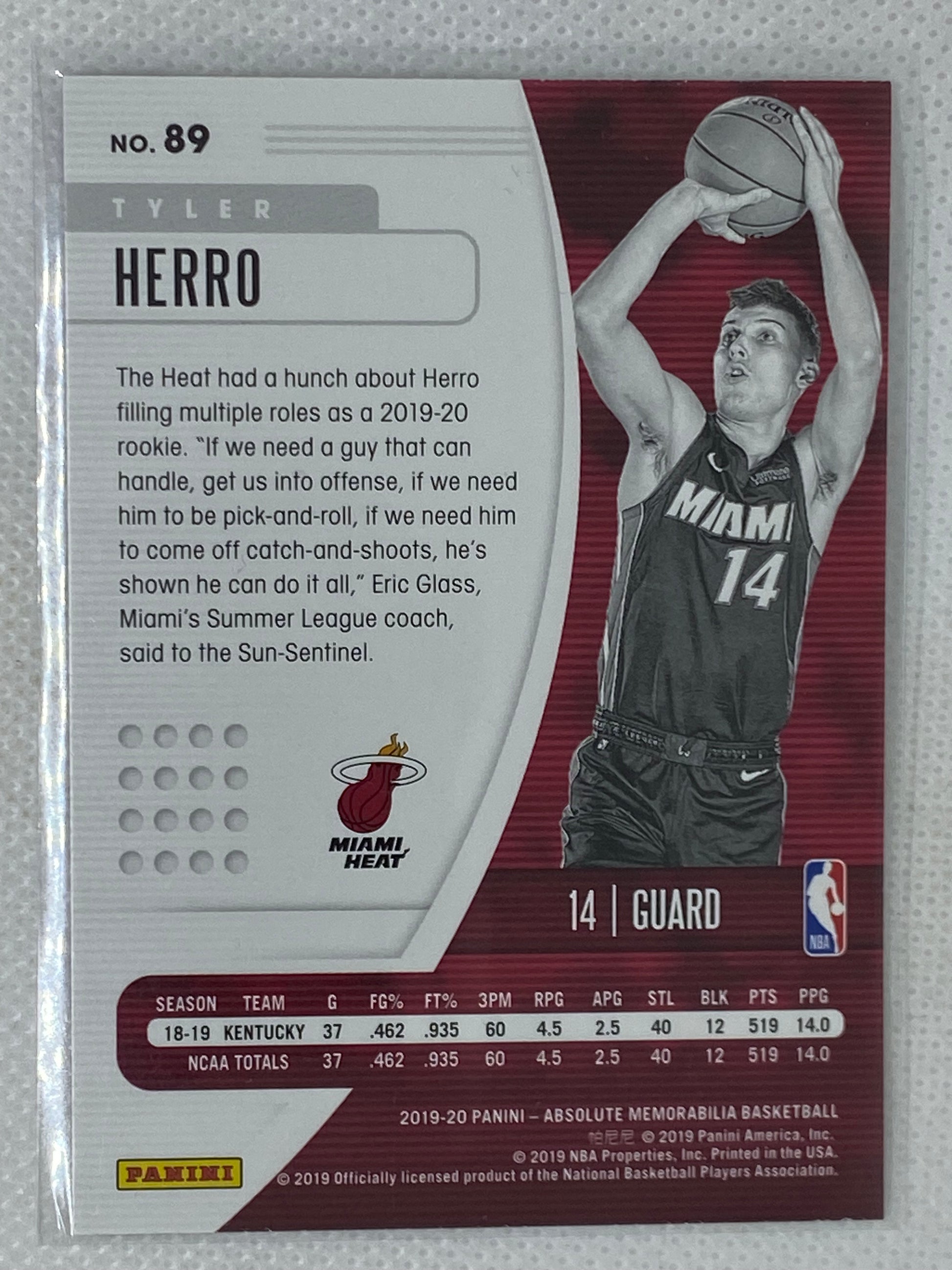 2019-20 Absolute Memorabilia Tyler Herro Rookie Card RC #89 Miami Heat
