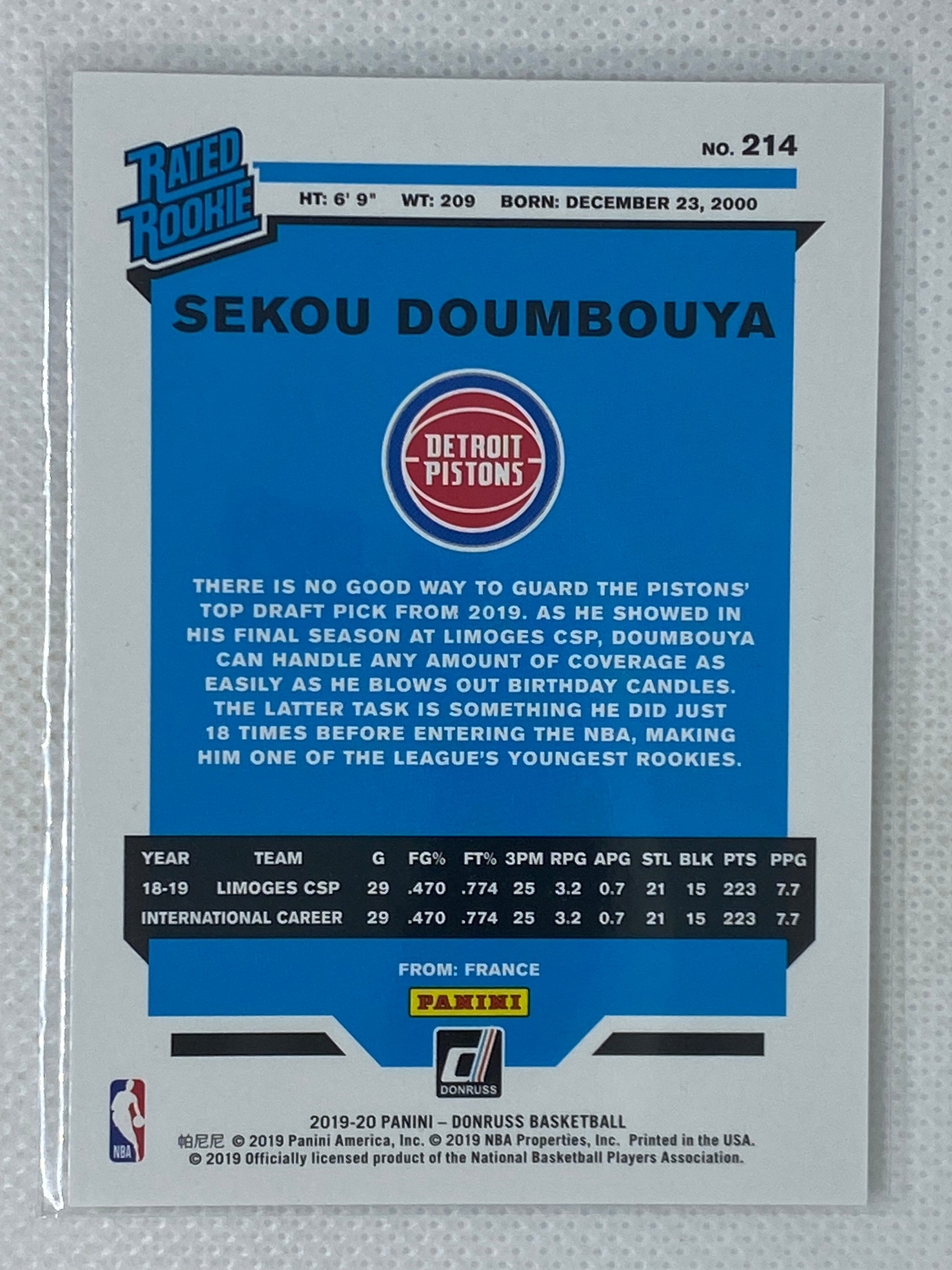 2019-20 Donruss Sekou Doumbouya Rookie Detroit Pistons #214