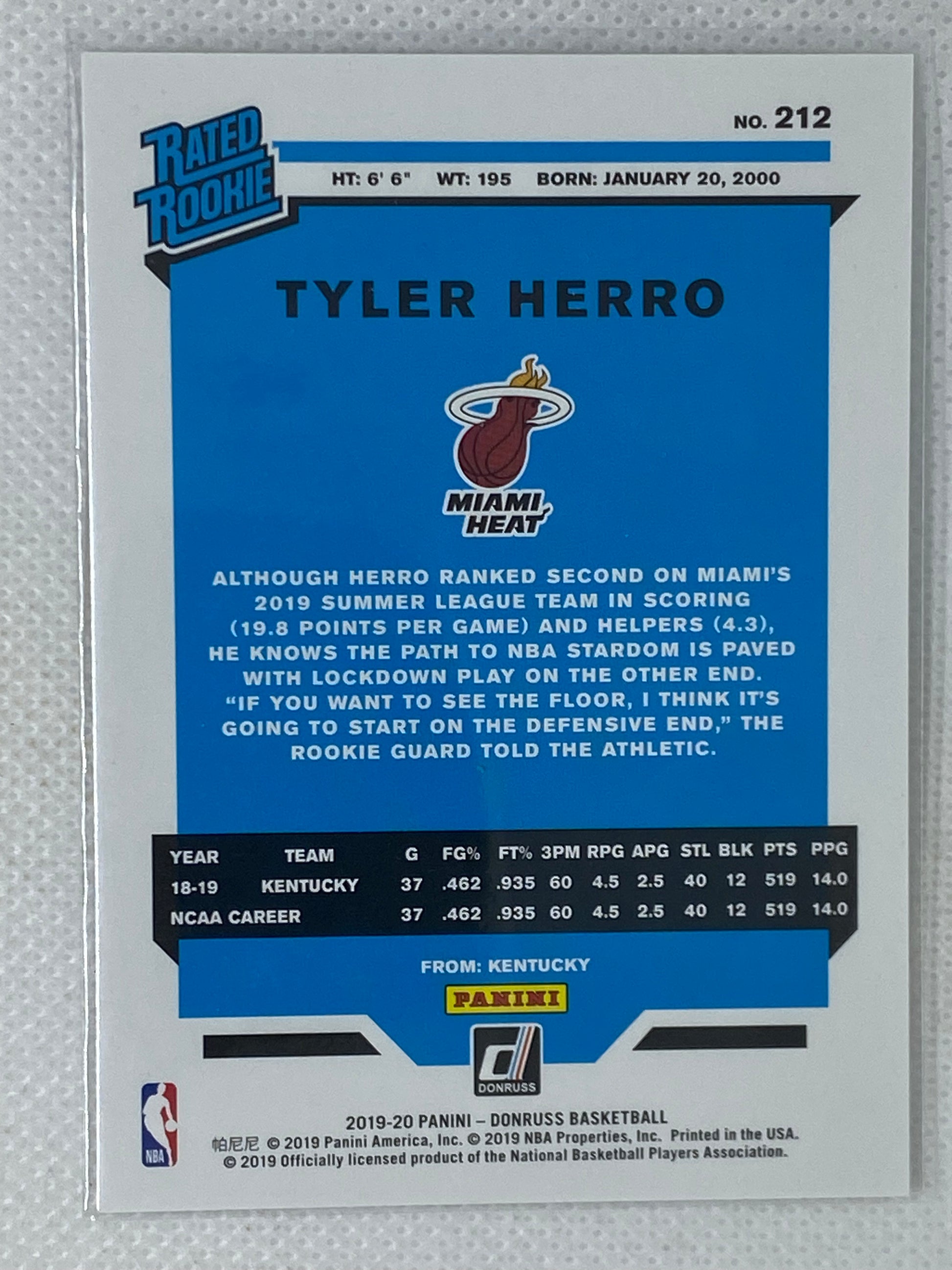 2019-20 Donruss Tyler Herro Rookie #212 Rated Rookie RC Miami Heat