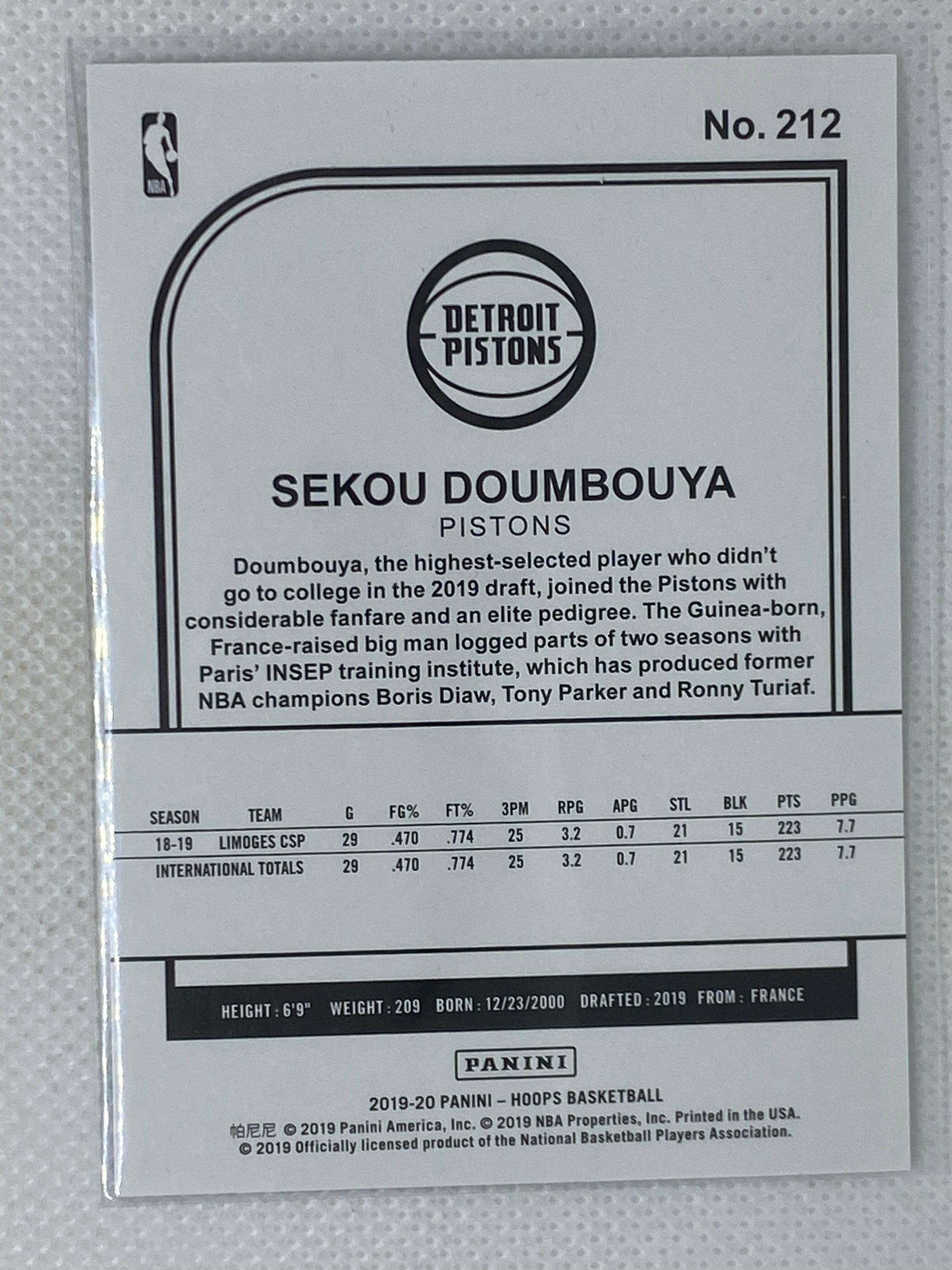 2019-20 NBA Hoops Winter Sekou Doumbouya RC Detroit Pistons Rookie Card # 212