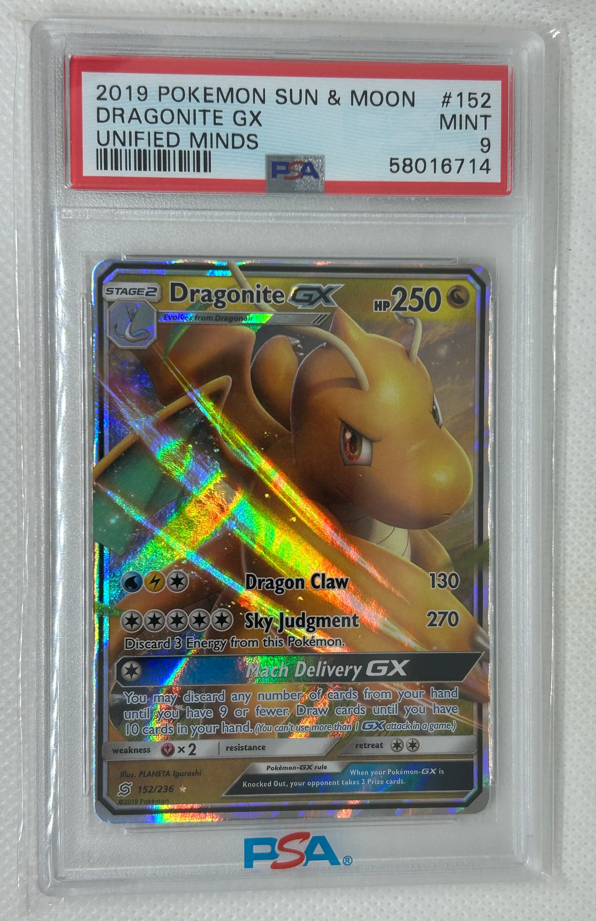 2019 Pokémon Sun & Moon Dragonite GX Unified Minds 152/236 PSA 9