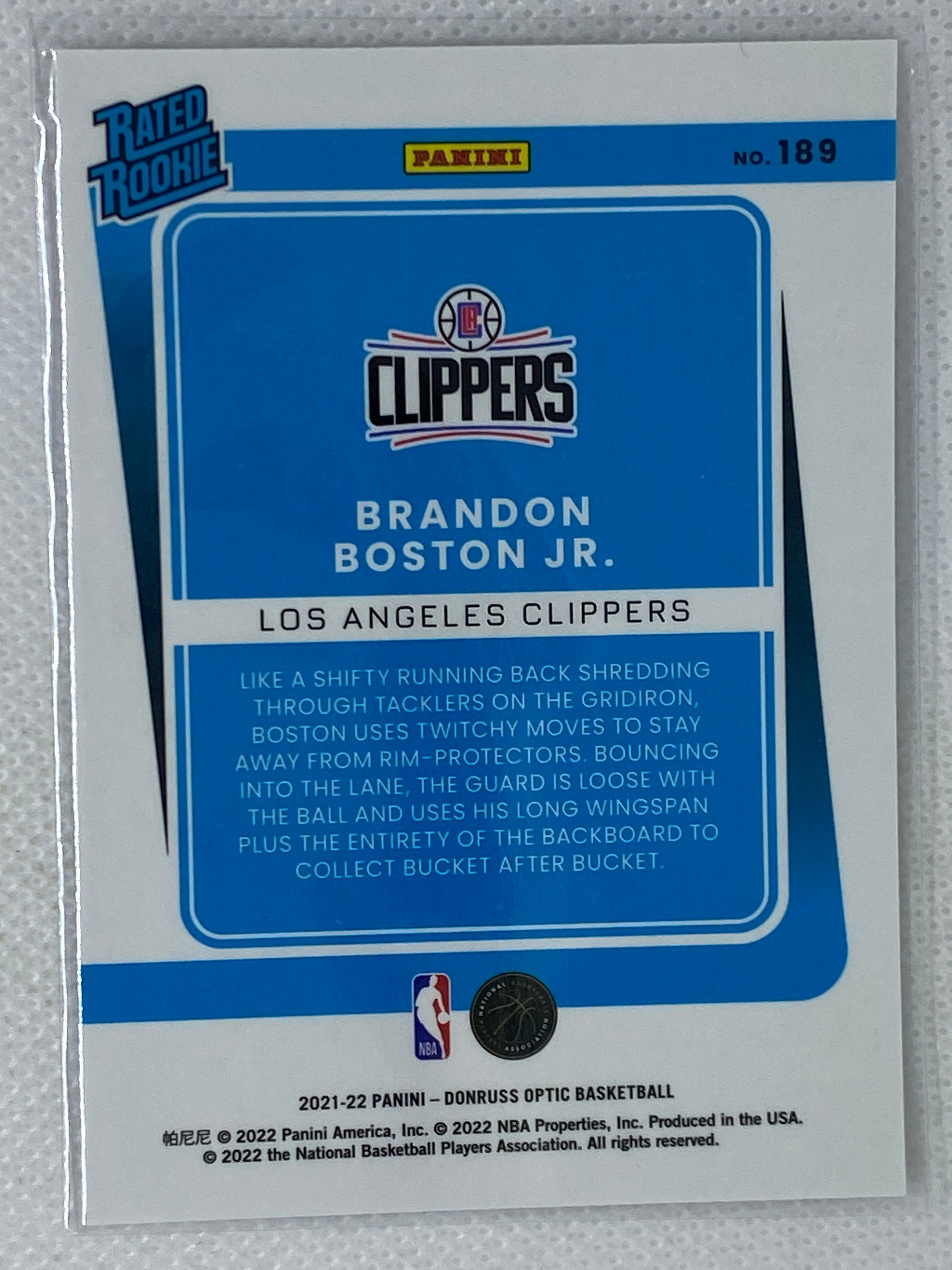 2021-22 Donruss Optic #189 Brandon Boston Jr. RC Rated Rookie Clippers