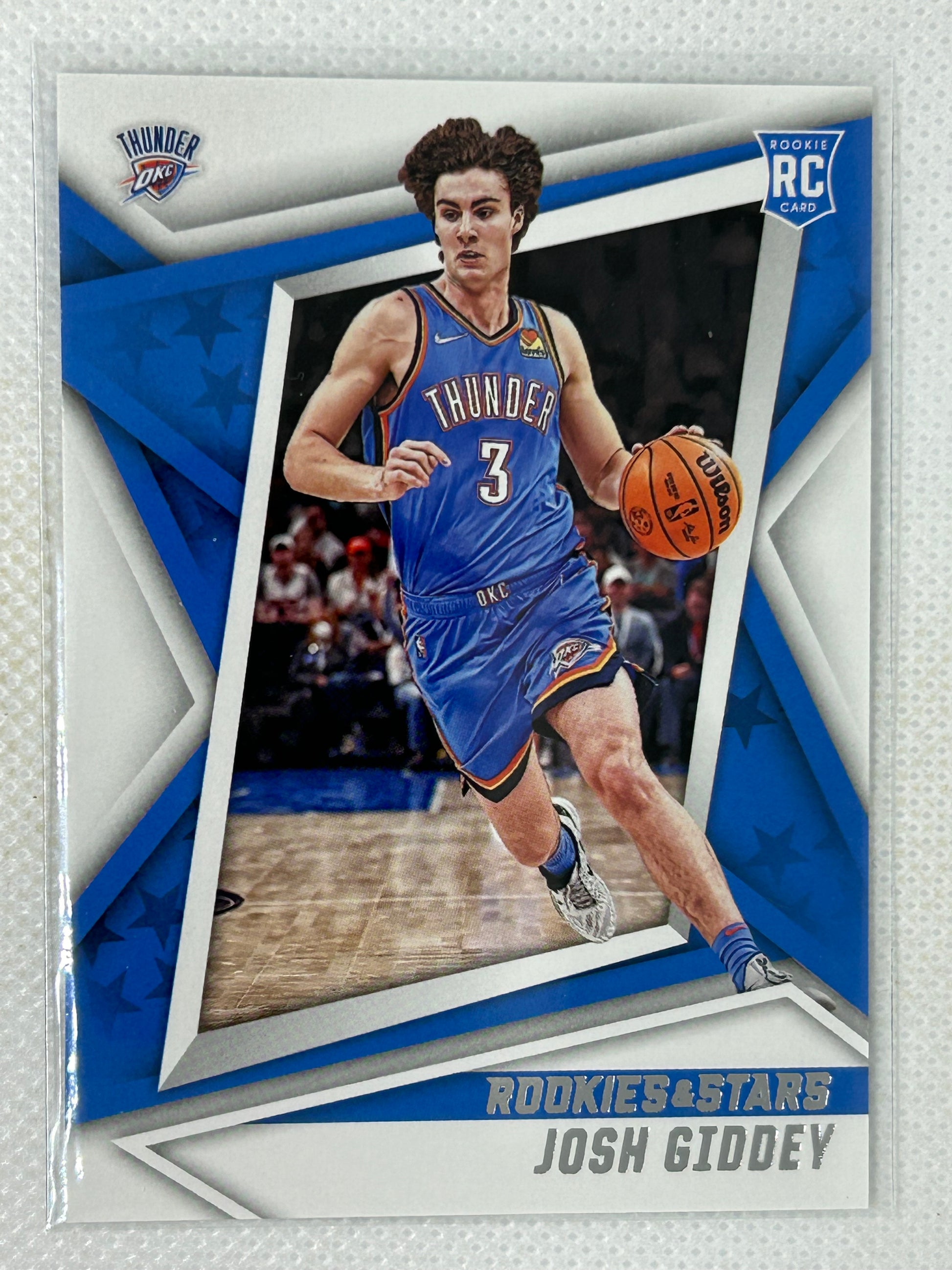 This 2021-22 Panini Chronicles card features Josh Giddey, the highly-touted rookie for the Oklahoma City Thunder. With the Rookies & Stars design, this card is a must-have for any basketball card collector. Add it to your collection and showcase Giddey's potential for greatness.
