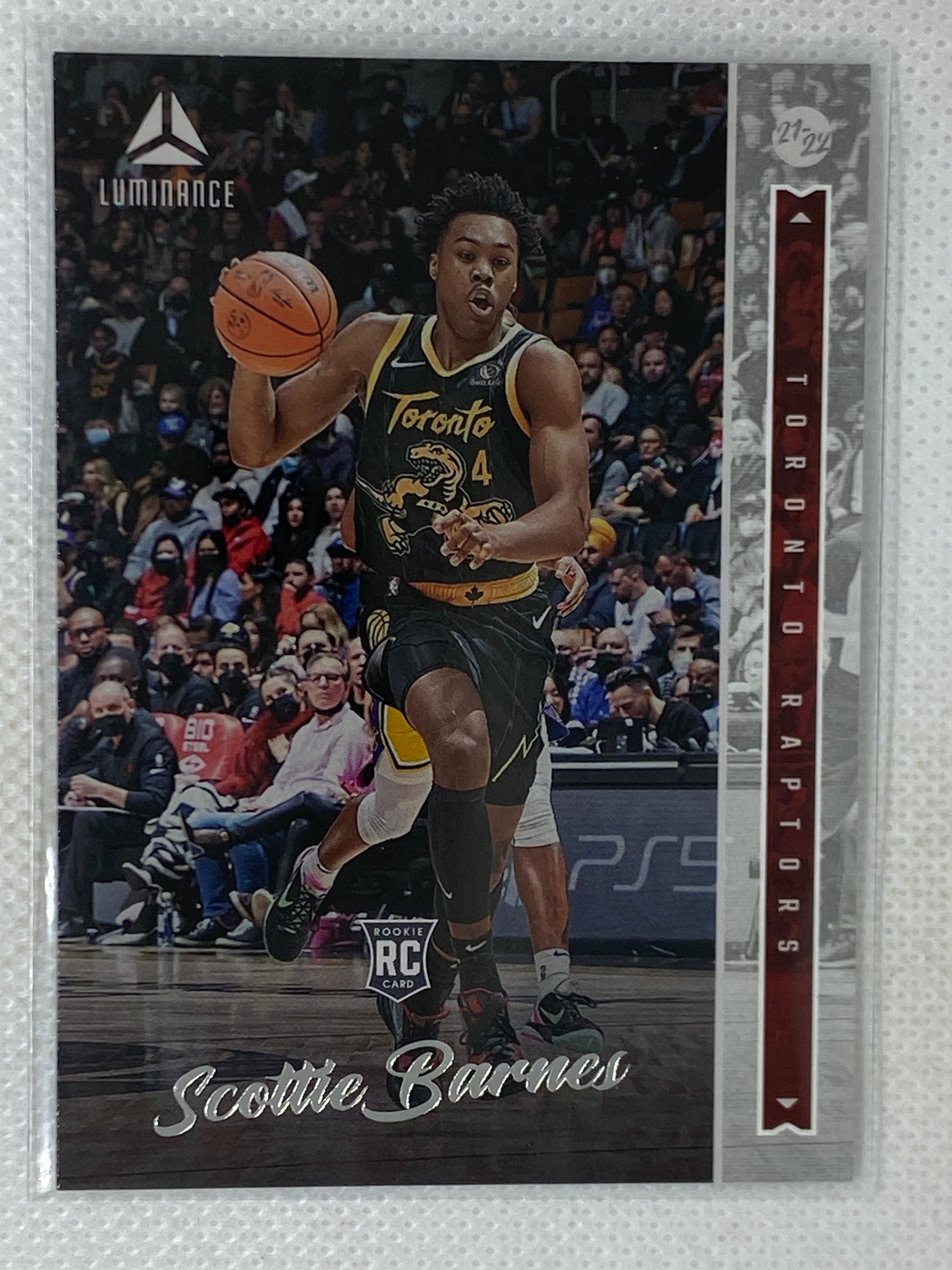 The 2021-22 Panini Chronicles Luminance #260 Scottie Barnes RC for the Toronto Raptors is a must-have for any basketball card collector. Don't miss out on this rare addition to your collection.