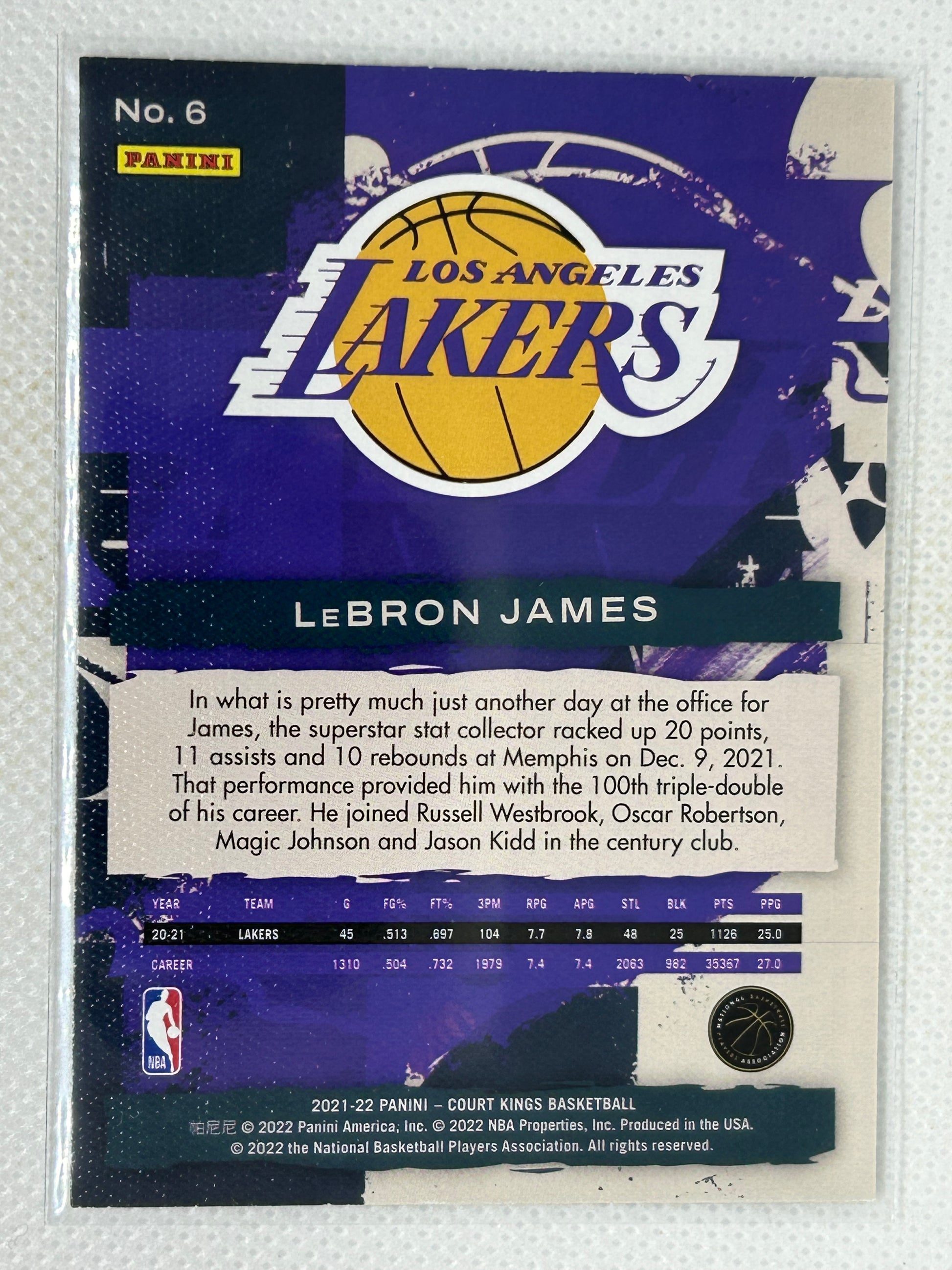 2021-22 Panini Court Kings Lebron James #6 Los Angeles Lakers