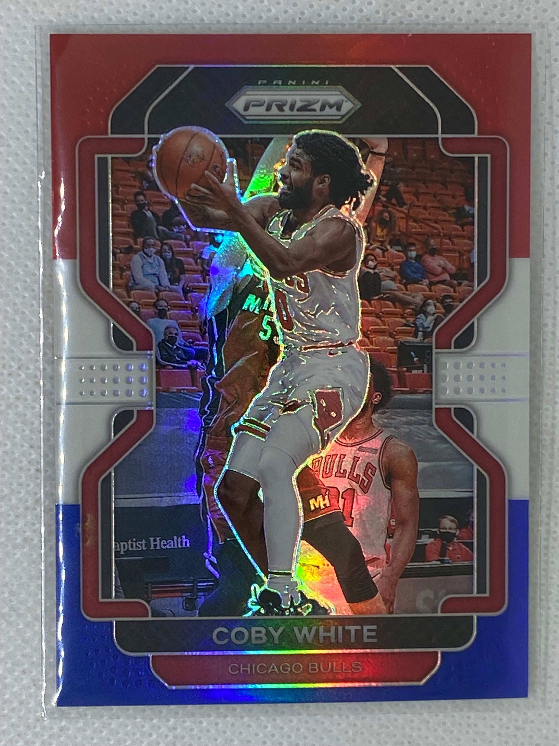 2021-22 Panini Prizm Red White & Blue Coby White #143 Chicago Bulls