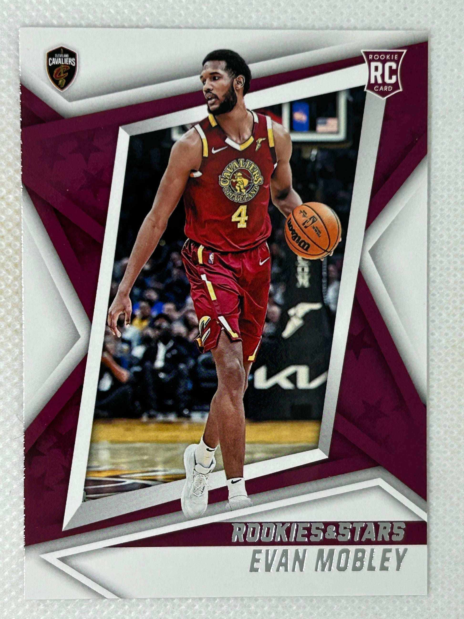 The 2021-22 Panini Rookies & Stars Rookie Card #117 showcases Evan Mobley of the Cleveland Cavaliers. Known for his impressive defensive skills, versatility, and ability to impact the game on both ends of the floor, Mobley has quickly become a key player for the Cavaliers. This card represents the beginning of a promising career with significant potential in the NBA.