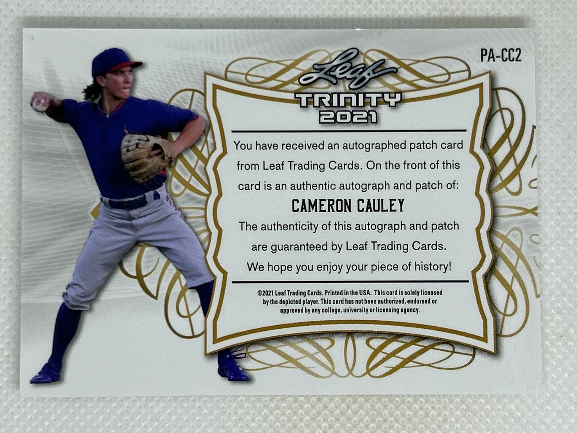 2021 Leaf Trinity Patch Auto Cameron Cauley #PA-CC2 Patch Autograph Texas Rangers