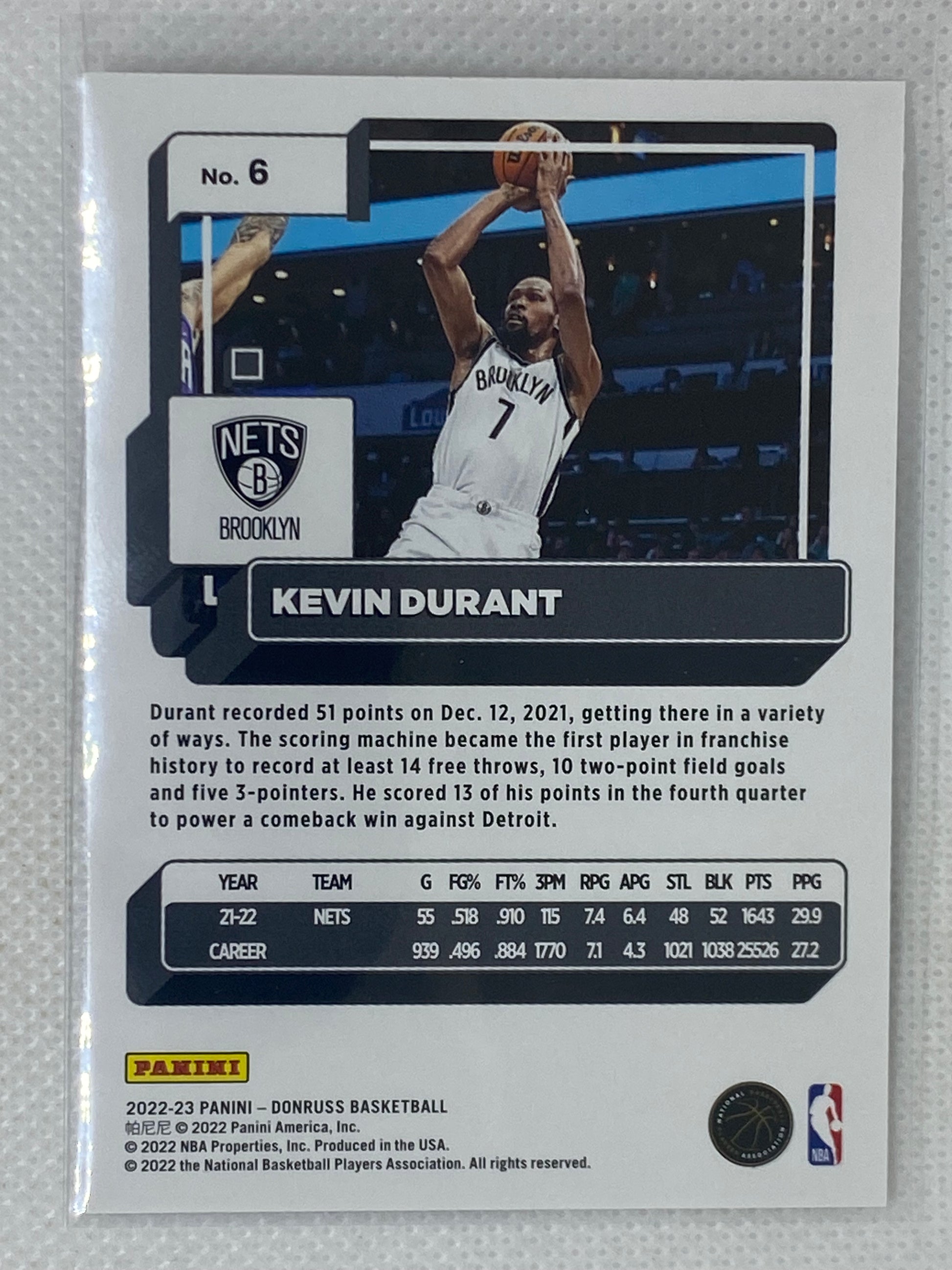 2022-23 Donruss Basketball Base #6 Kevin Durant Brooklyn Nets