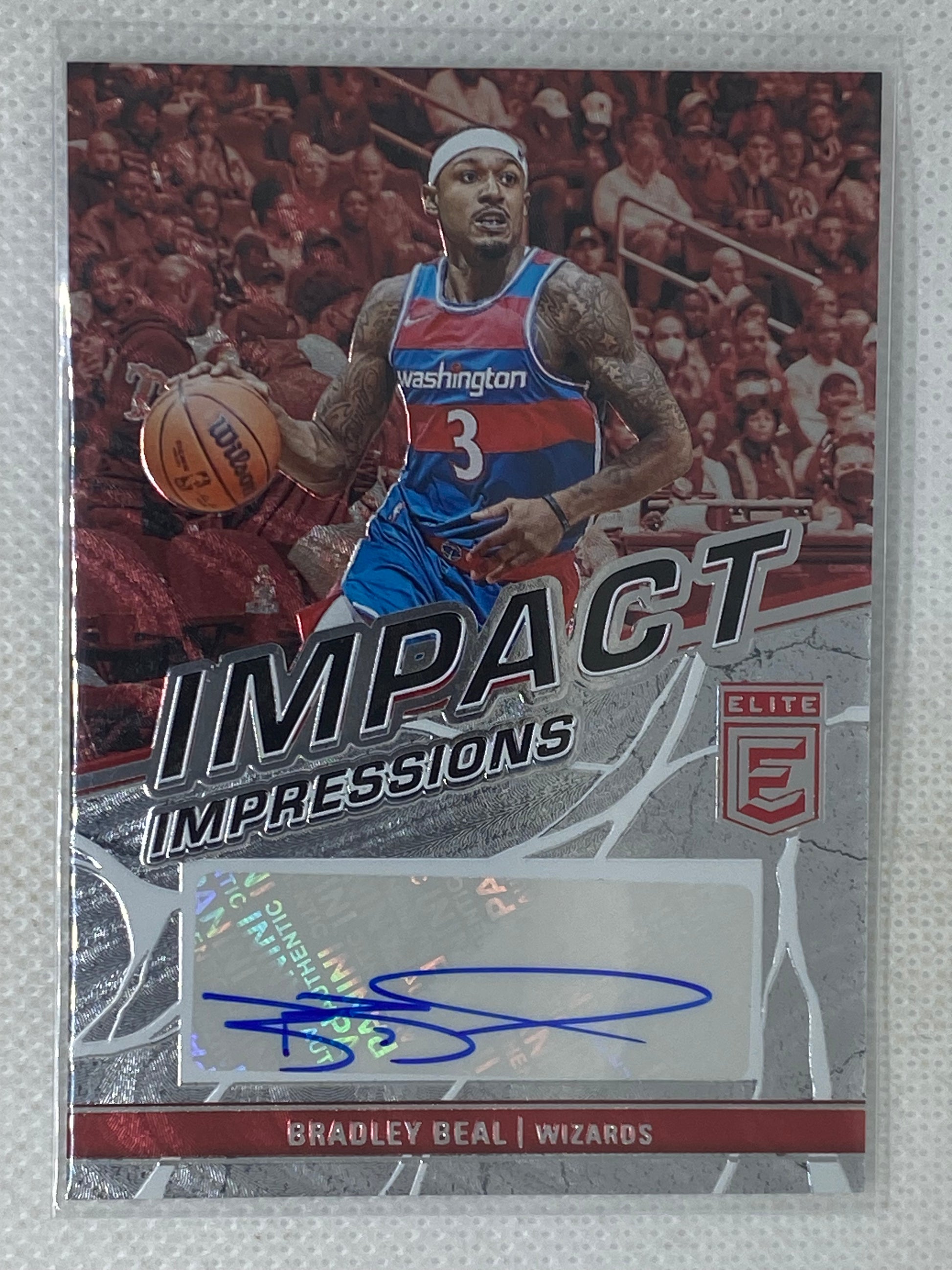 Impactful Beal Autograph! Acquire the 2022-23 Panini Elite Bradley Beal Impact Impressions Autograph #11-BDB card, showcasing the signature of the Washington Wizards' star, Bradley Beal. This card is a must-have addition to any NBA card collection, celebrating Beal's impact on the game. Don't miss out on owning this unique piece of Wizards' history – make it yours now and elevate your collection!
