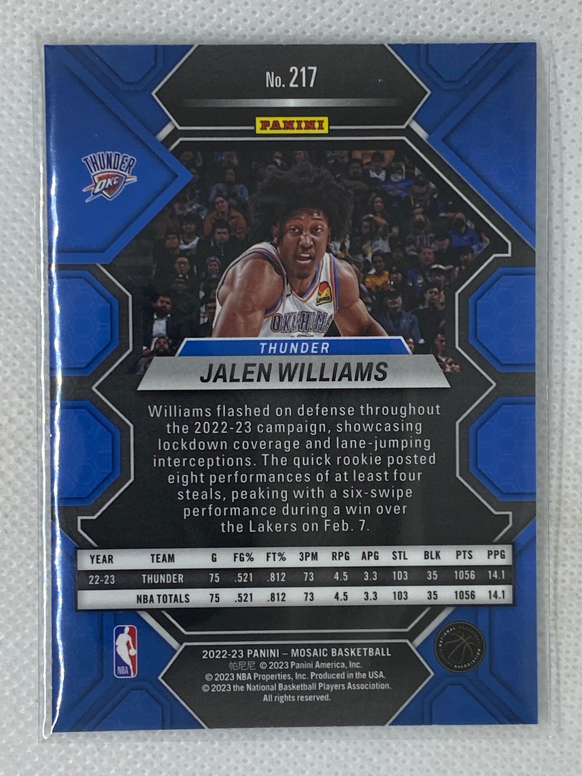 2022-23 Panini Mosaic Jalen Williams #217 Rookie Card Oklahoma City Thunder
