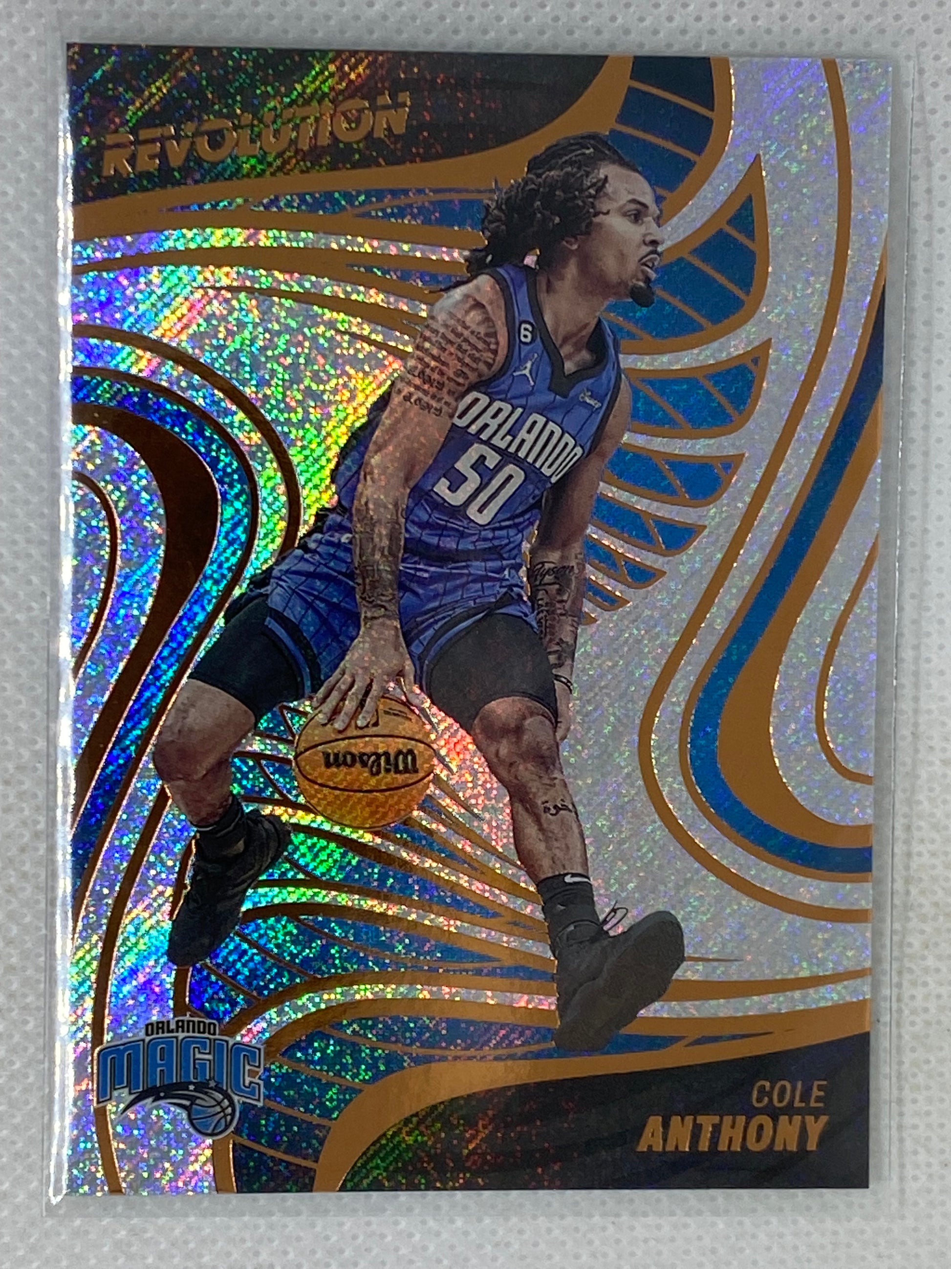 Discover the exclusive 2022-23 Panini Revolution Basketball Base #8 featuring Cole Anthony of the Orlando Magic, available only on our website! Elevate your NBA card collection with this highly sought-after trading card, showcasing the skills of one of the league's promising young talents. Don't miss your chance to own this valuable collectible. Click now to visit our website and secure the 2022-23 Panini Revolution Basketball Base Cole Anthony #8 card for your collection today!