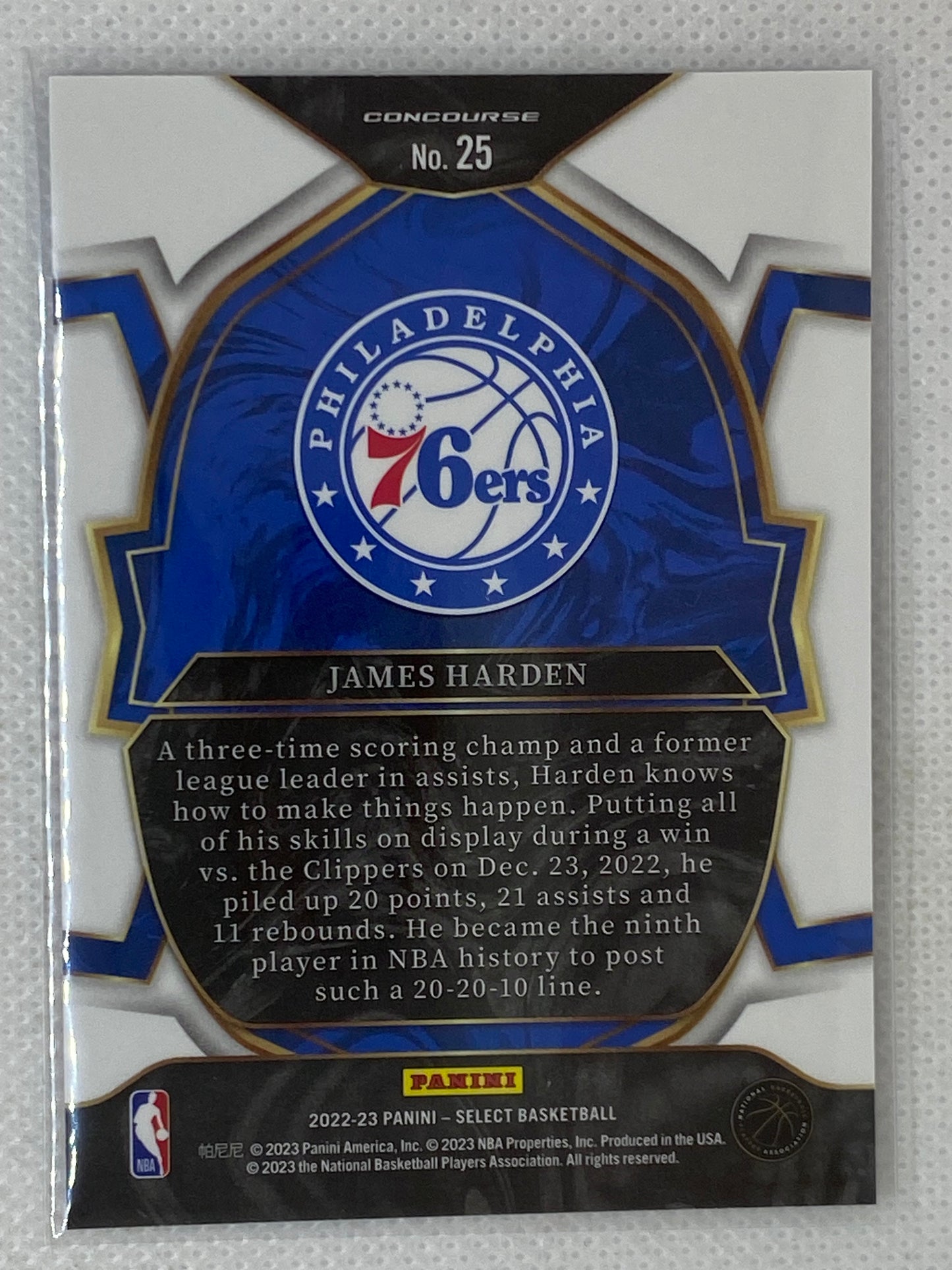 2022-23 Panini Select Blue James Harden #25 Philadelphia 76ers