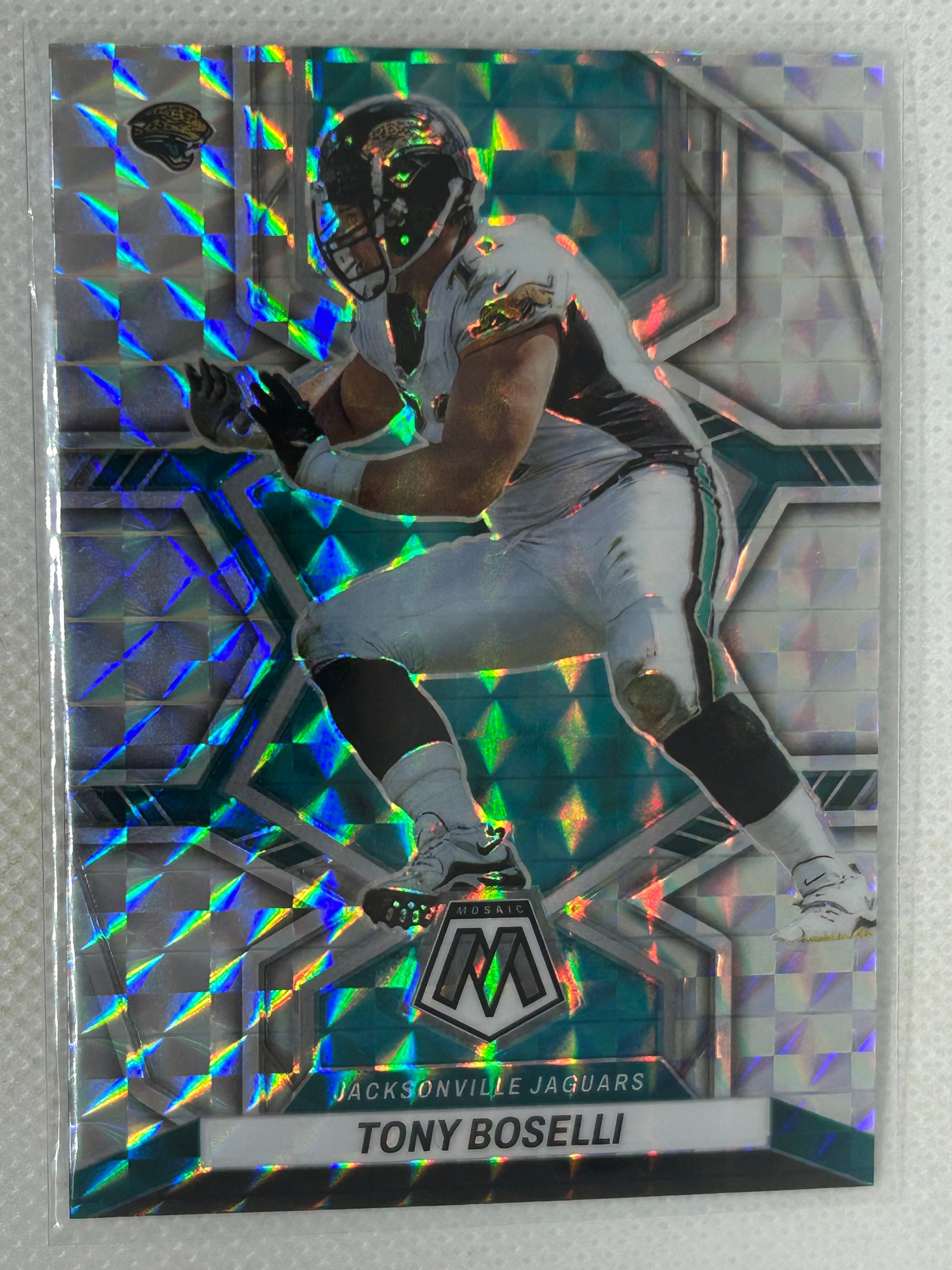 Add this Tony Boselli Silver Mosaic Prizm to elevate your 2022 Jacksonville Jaguars collection with the 2022 Panini Mosaic #247.
