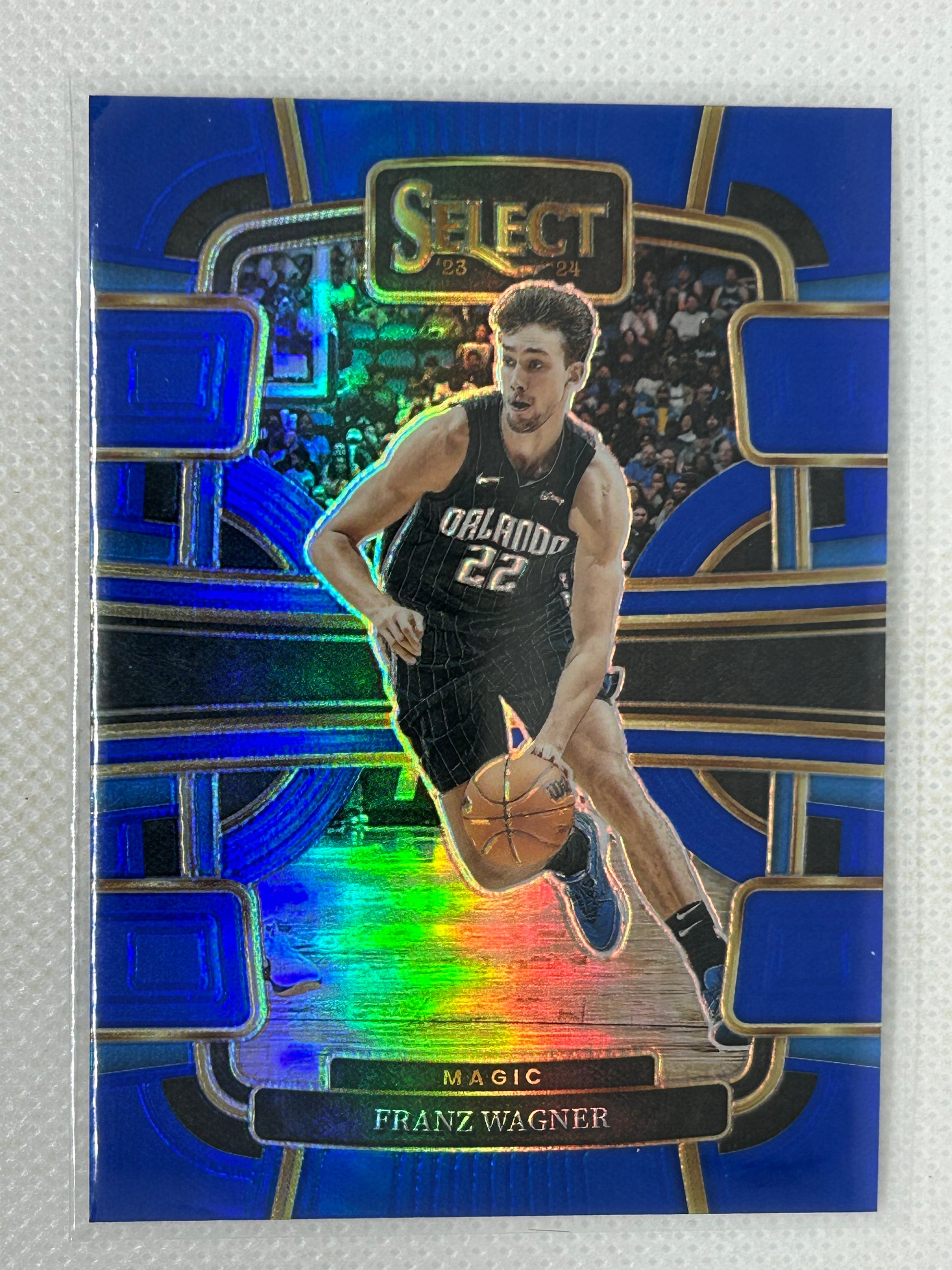 The 2023-24 Panini Select Blue Silver #17 card features the talented Franz Wagner of the Orlando Magic. Perfect for any collector or fan of the team, this card is a must-have for your collection.