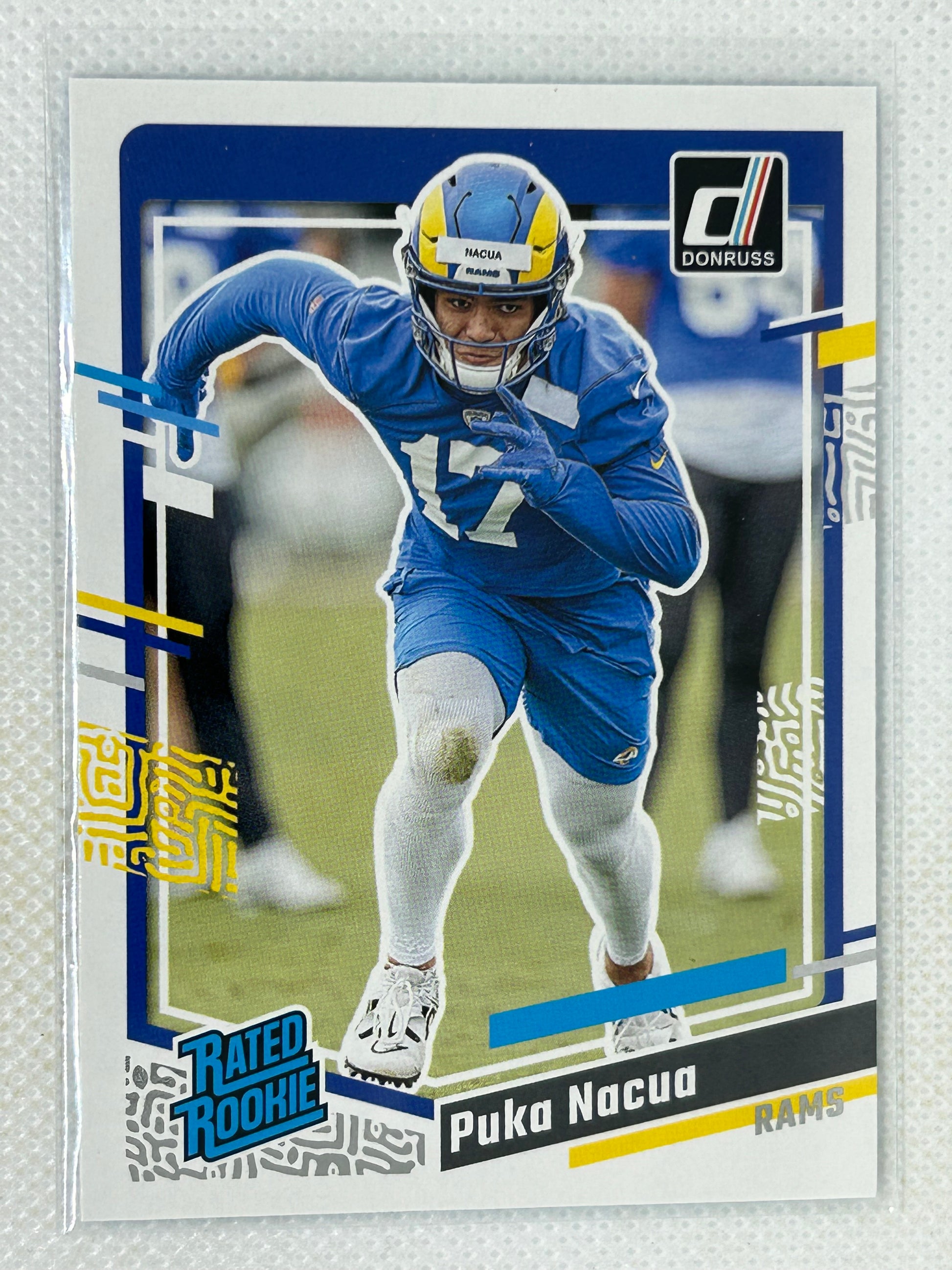 Upgrade your collection with the 2023 Panini Donruss Rated Rookie #357 Puka Nacua Los Angeles Rams. This highly sought-after card features a standout rookie from the Los Angeles Rams, perfect for any fan or collector. Don't miss out on adding this gem to your collection!