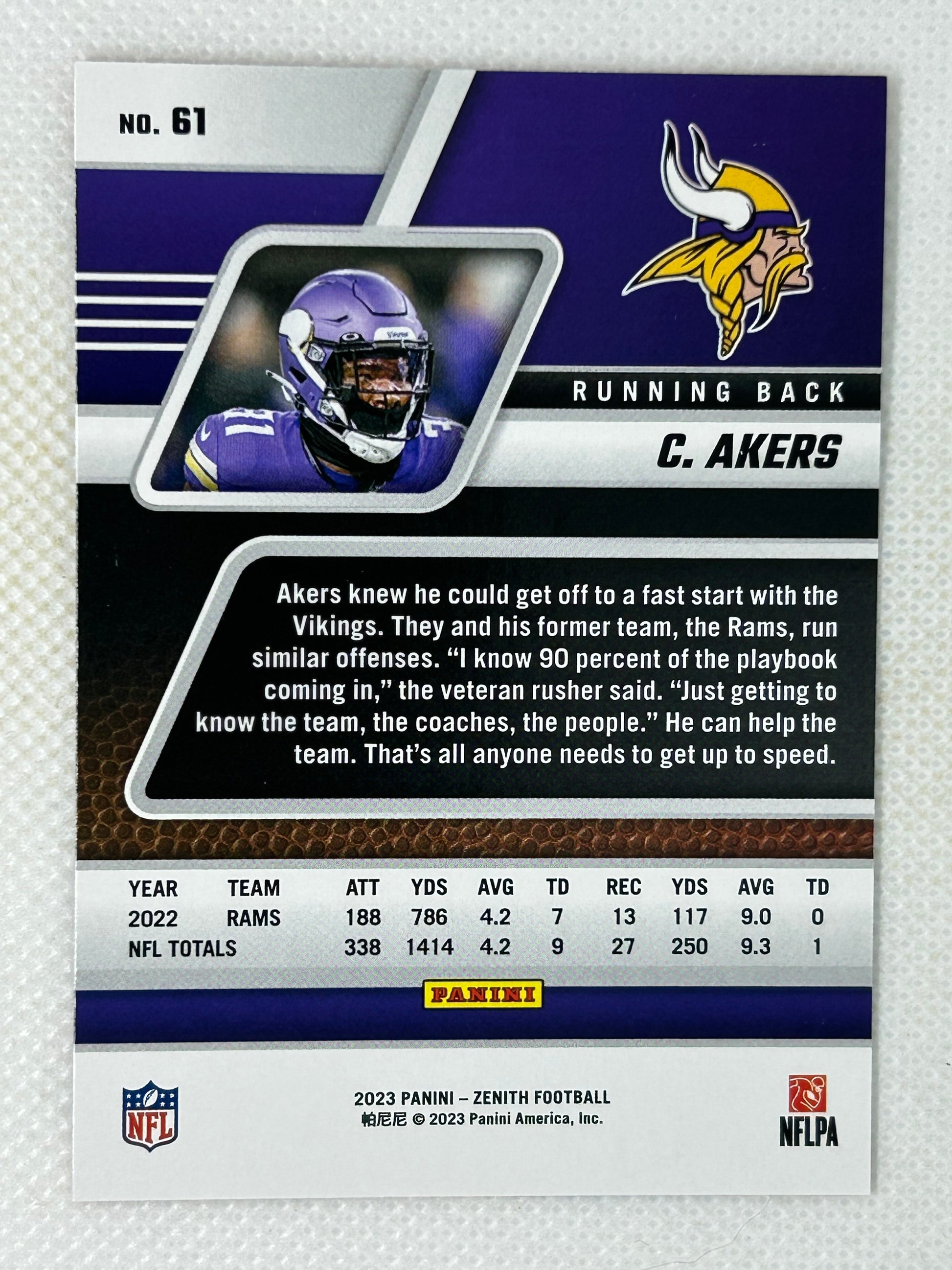 2023 Panini Zenith Cam Akers #61 Minnesota Vikings